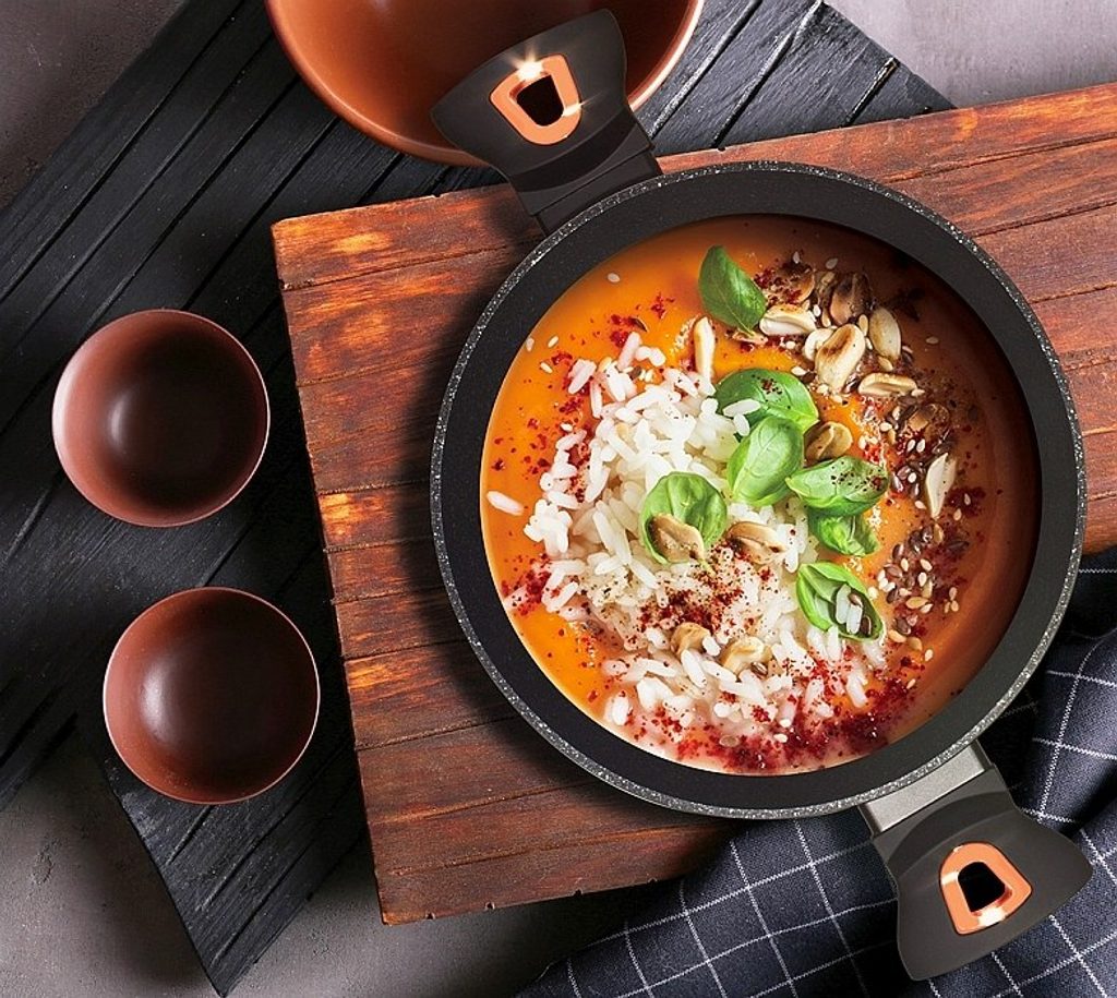 - energeticky úsporné vaření zajišťuje korpus z odolného kovaného hliníku, který se rychle nahřívá po celém povrchu a má perfektní tepelnou vodivost