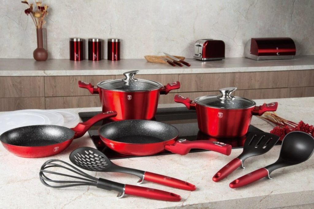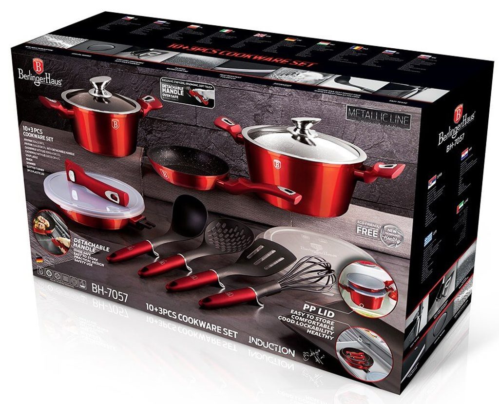 Hledáte vhodnou sadu nádobí do vaší kuchyně? Sadou získáte všechny potřebné nádoby na vaření, ať už budete vařit pro sebe nebo pro více osob. Velkou výhodou je, že můžete objednat najednou více nádobí od ověřeného výrobce BERLINGERHAUS. Sadu nádobí sjednocuje jednotný design, navíc červená barva celé sady je univerzální a vyjímat se bude v každé kuchyni.