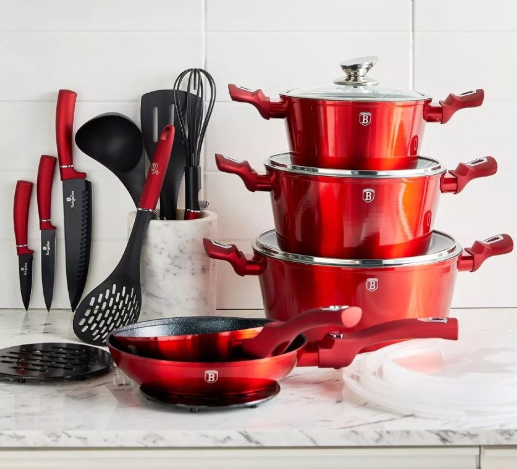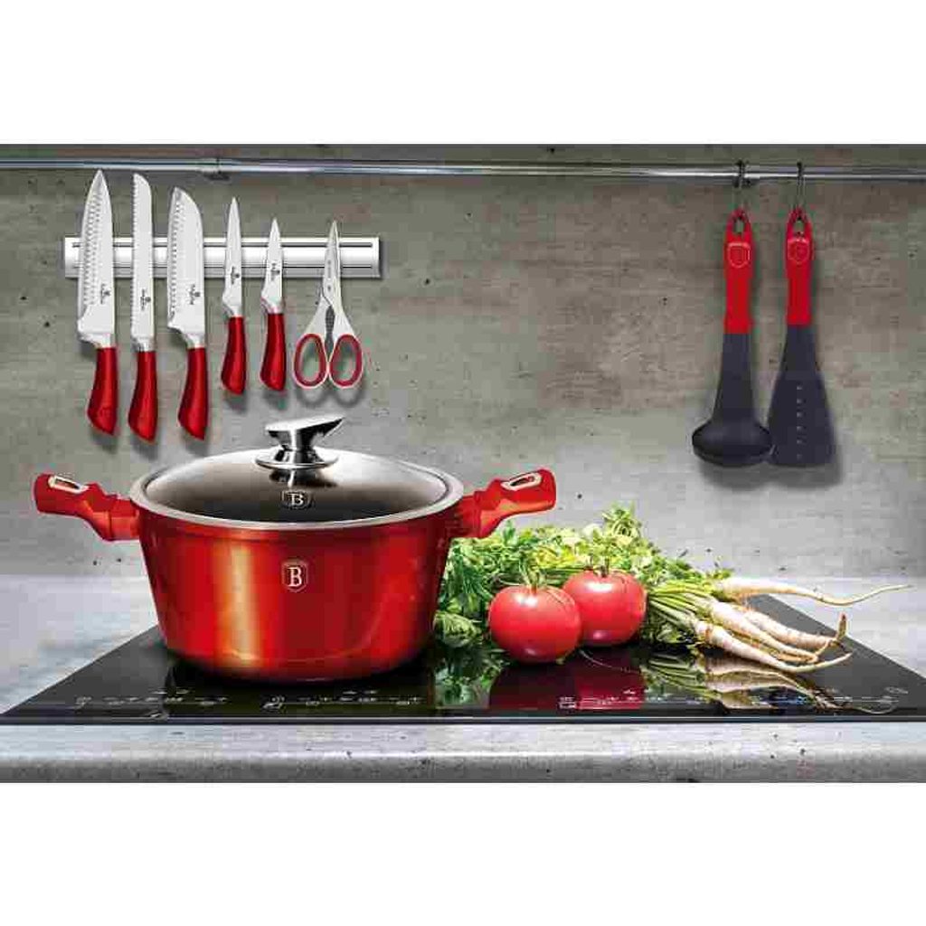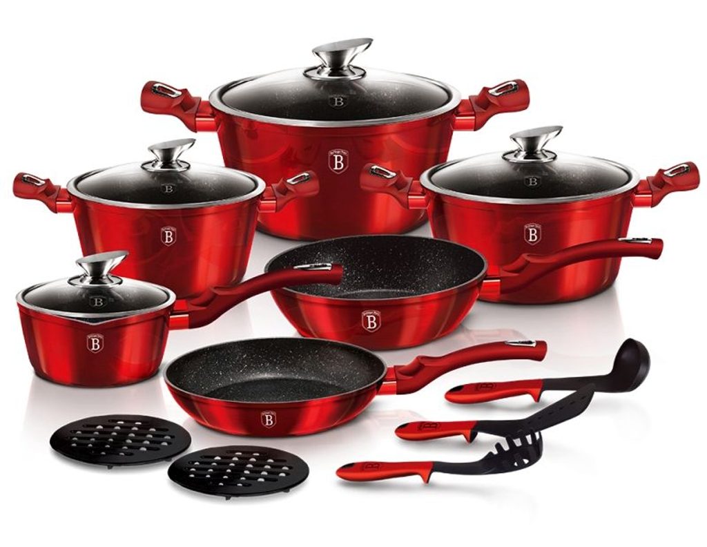 Hledáte vhodnou sadu nádobí do vaší kuchyně? Sadou získáte všechny potřebné nádoby na vaření, ať už budete vařit pro sebe nebo pro více osob. Velkou výhodou je, že můžete objednat najednou více nádobí od ověřeného výrobce BERLINGERHAUS. Sadu nádobí sjednocuje jednotný design, navíc červená barva celé sady je univerzální a vyjímat se bude v každé kuchyni.