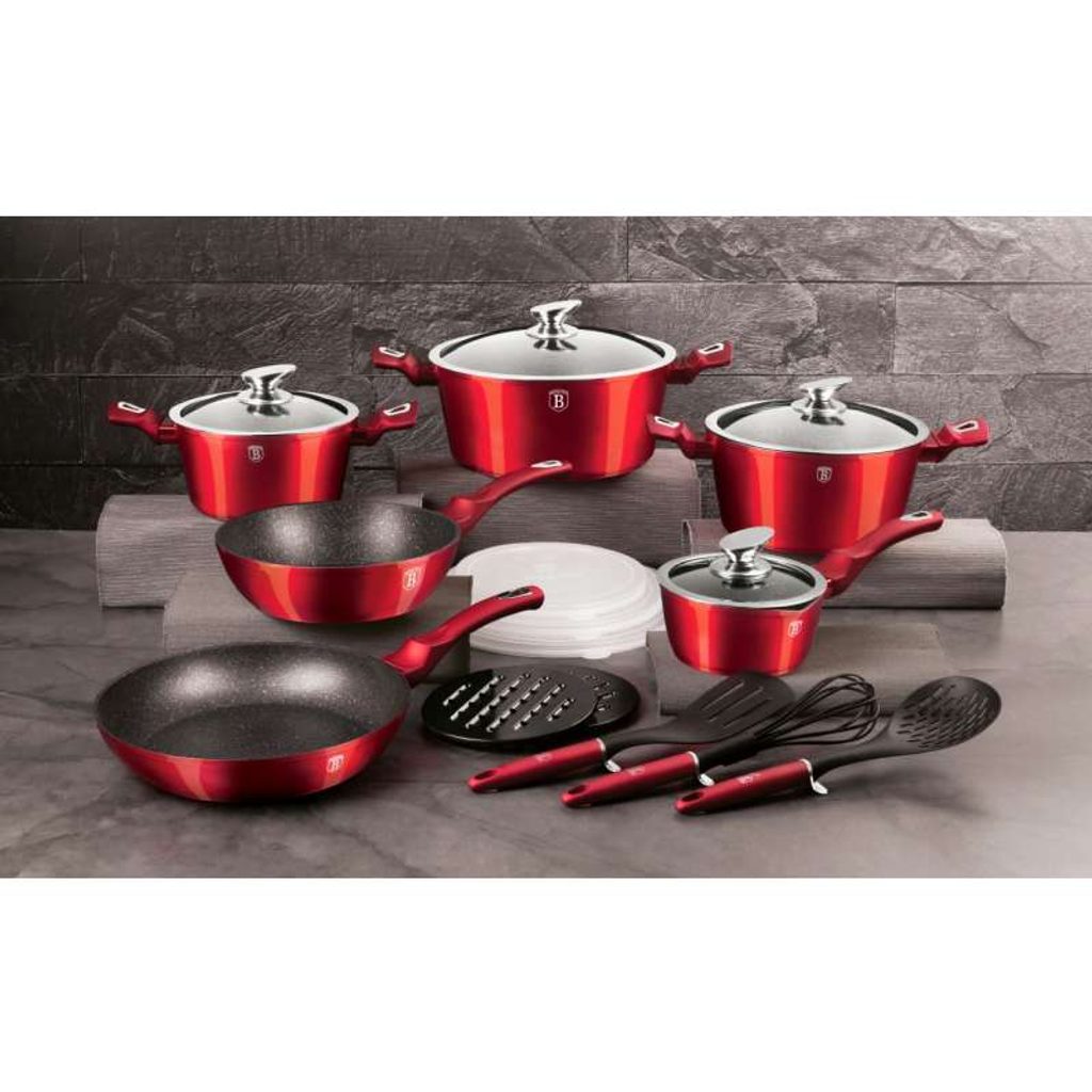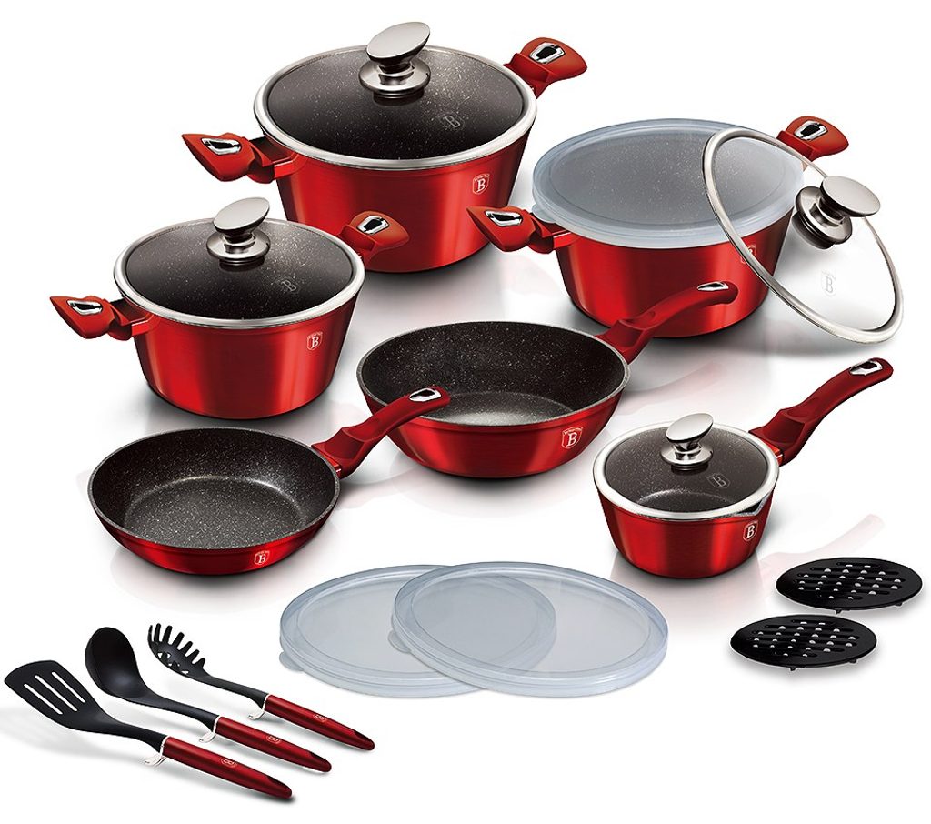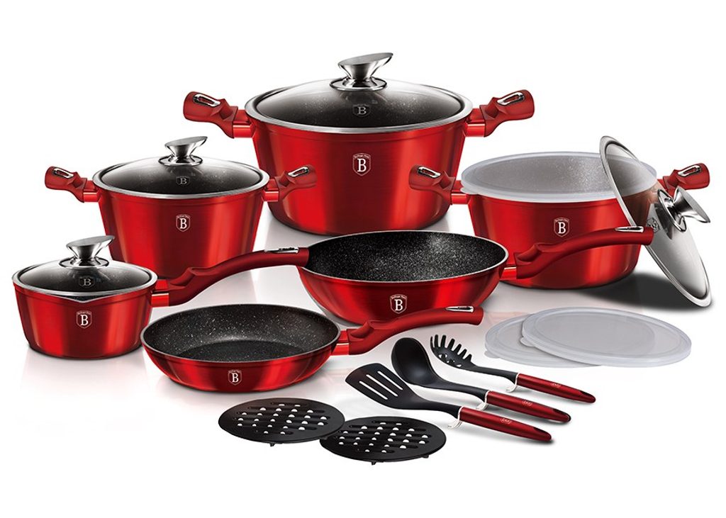 Hledáte vhodnou sadu nádobí do vaší kuchyně? Sadou získáte všechny potřebné nádoby na vaření, ať už budete vařit pro sebe nebo pro více osob. Velkou výhodou je, že můžete objednat najednou více nádobí od ověřeného výrobce BERLINGERHAUS. Sadu nádobí sjednocuje jednotný design, navíc červená barva celé sady je univerzální a vyjímat se bude v každé kuchyni.