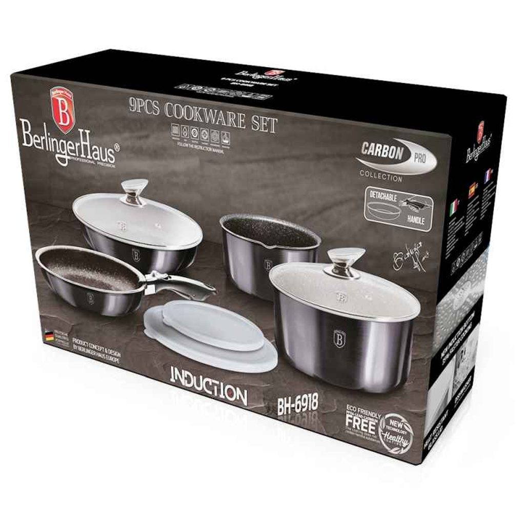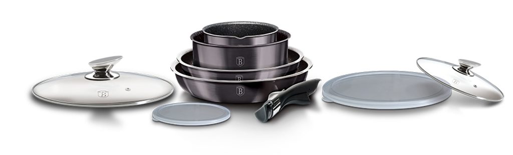 Hledáte vhodnou sadu nádobí do vaší kuchyně? Sadou získáte všechny potřebné nádoby na vaření, ať už budete vařit pro sebe nebo pro více osob. Velkou výhodou je, že můžete objednat najednou více nádobí od ověřeného výrobce BERLINGERHAUS. Sadu nádobí sjednocuje jednotný design, navíc černá barva celé sady je univerzální a vyjímat se bude v každé kuchyni.