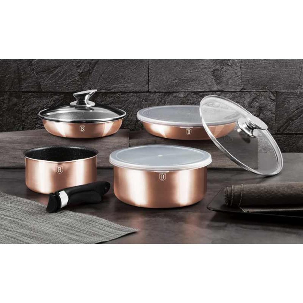 Hledáte vhodnou sadu nádobí do vaší kuchyně? Sadou získáte všechny potřebné nádoby na vaření, ať už budete vařit pro sebe nebo pro více osob. Velkou výhodou je, že můžete objednat najednou více nádobí od ověřeného výrobce BERLINGERHAUS. Sadu nádobí sjednocuje jednotný design, navíc zlatá barva celé sady je univerzální a vyjímat se bude v každé kuchyni.