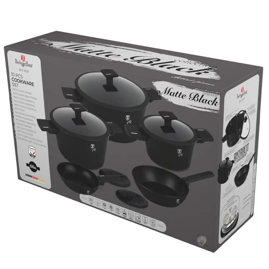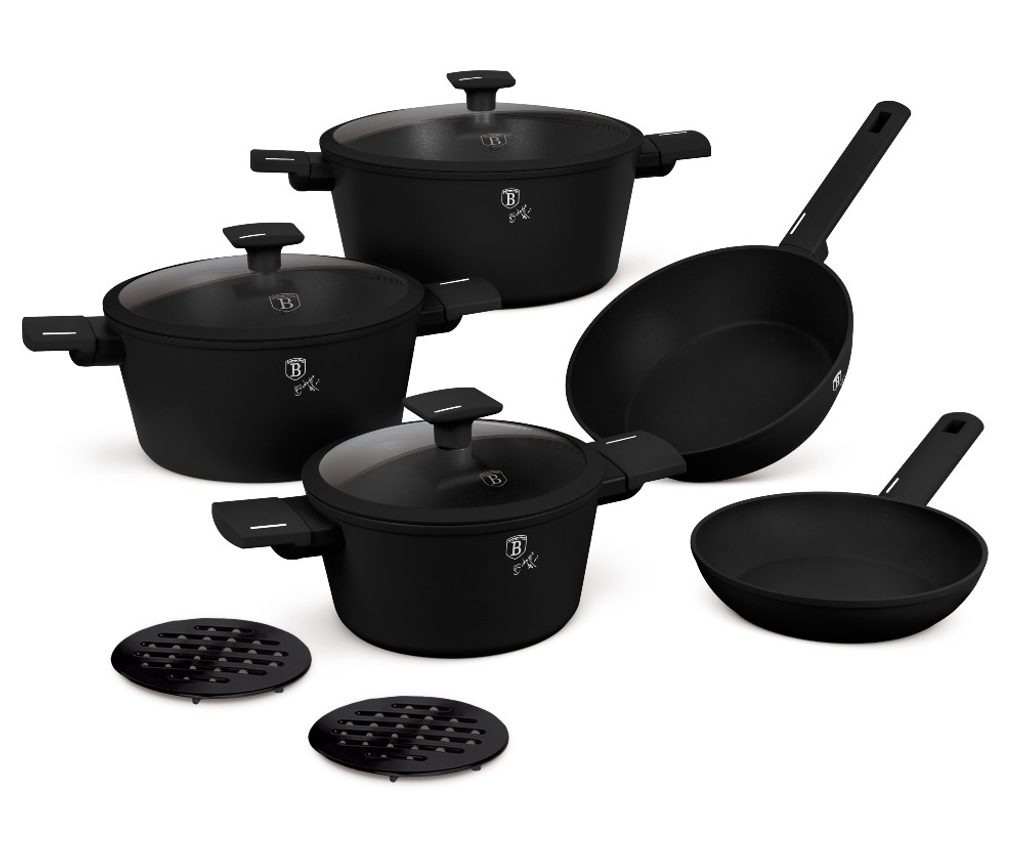 BERLINGERHAUS Sada nádobí s titanovým povrchem 10 ks Matte Black Collection BH-8197