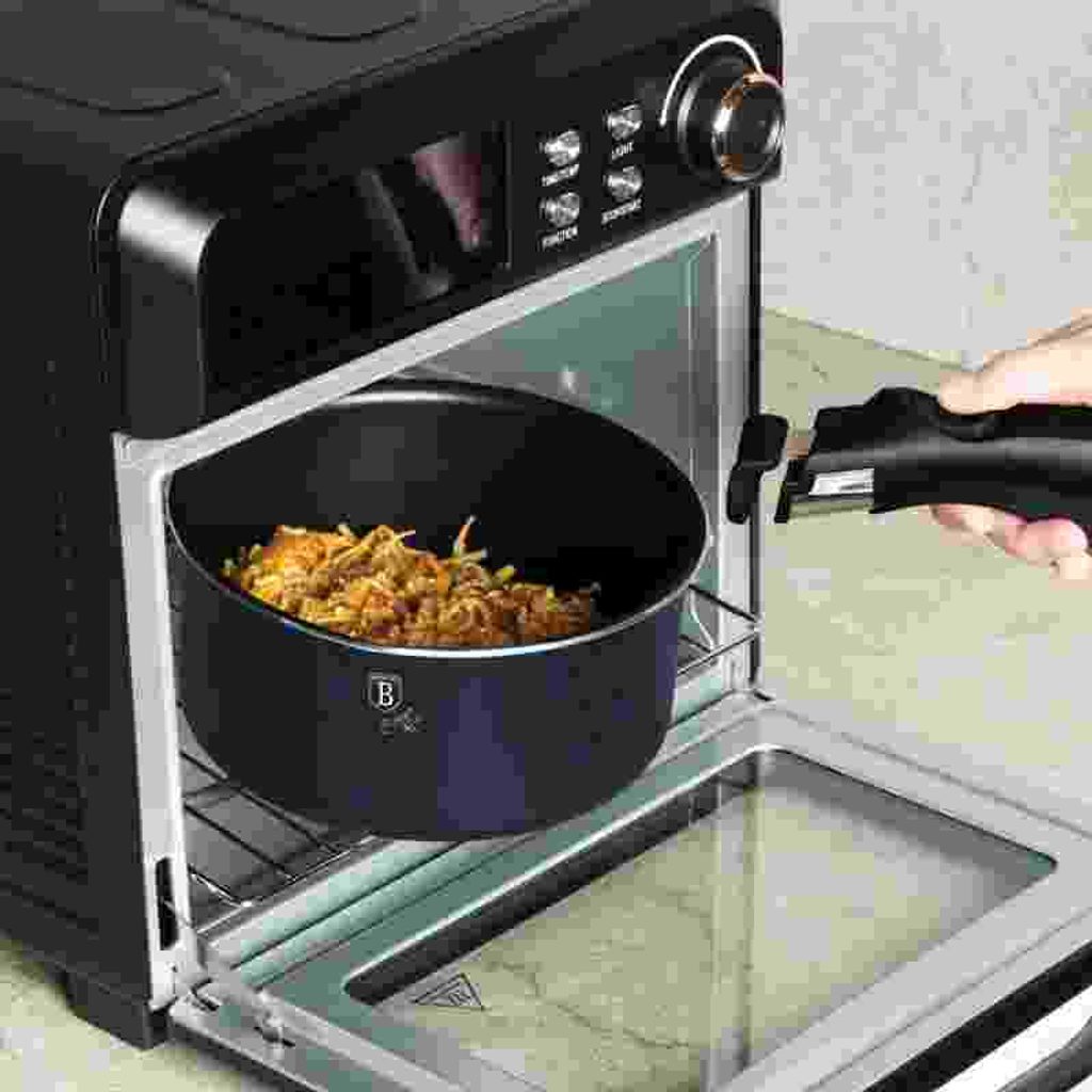 Objevte sadu nádobí Berlinger Haus, která kombinuje praktičnost, styl a moderní technologie. S touto sadou zvládnete jakékoli vaření – od smažení a dušení po pečení. Díky stohovatelnému designu ušetříte místo v kuchyni a chytrá víka Click It usnadňují manipulaci při vaření. Ergonomické rukojeti a měkké knoflíky Stay Cool zajišťují pohodlnou a bezpečnou práci bez popálení.