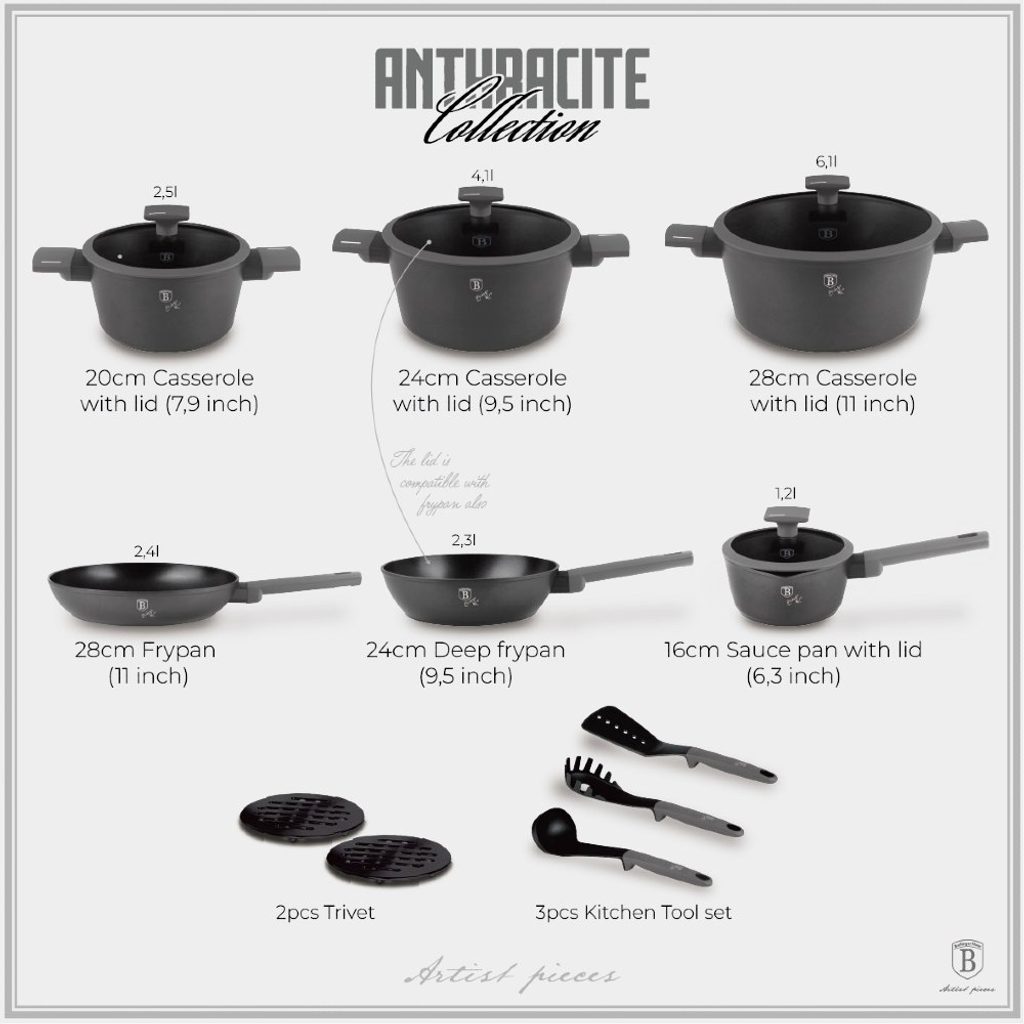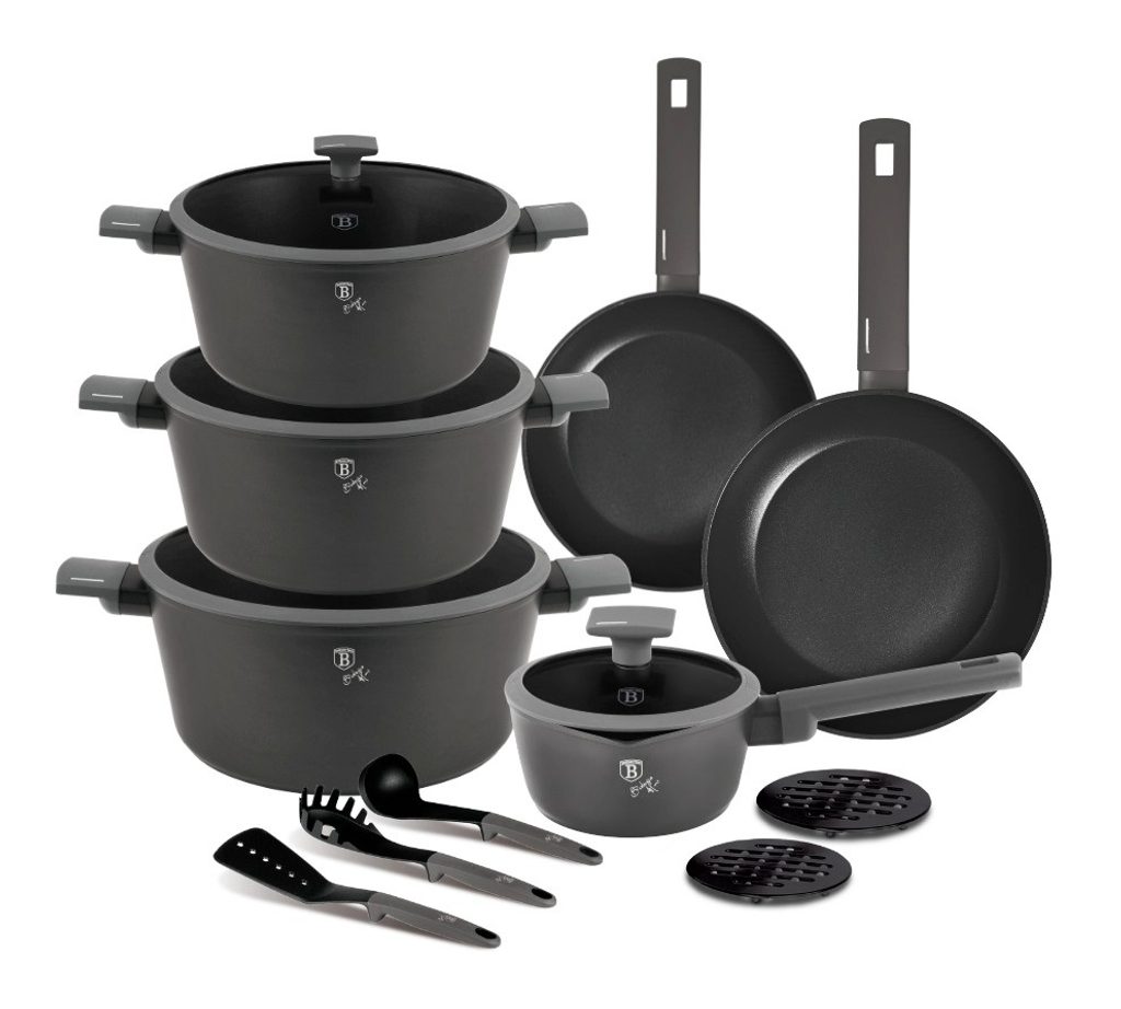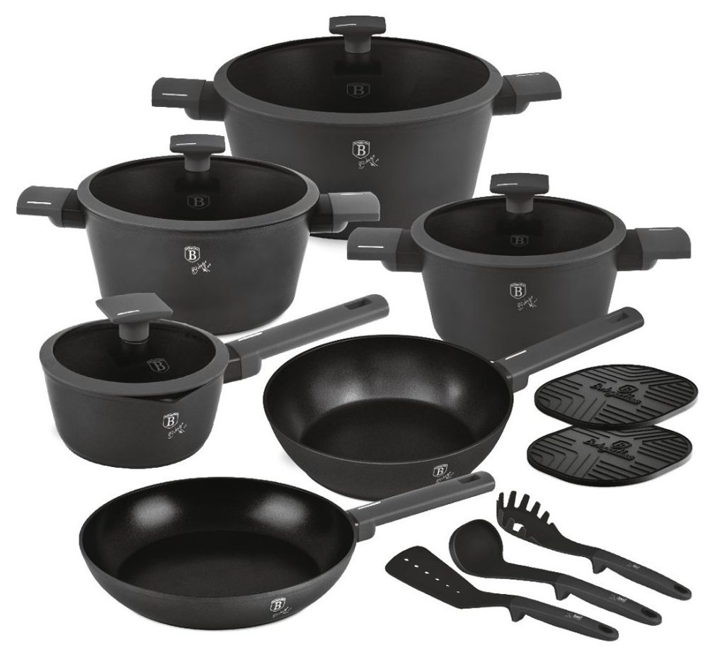 BERLINGERHAUS Sada nádobí s titanovým povrchem 15 ks Antracit Collection BH-8141