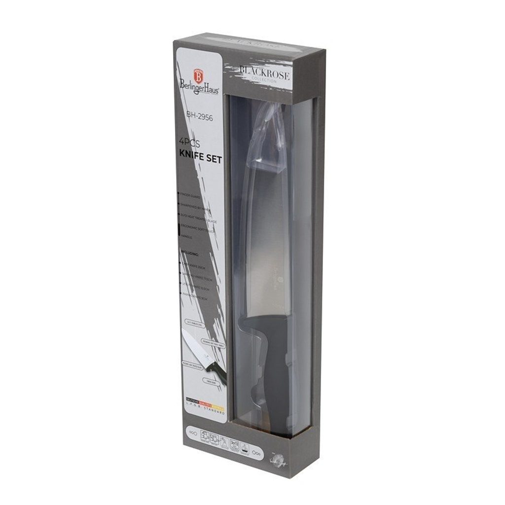Tato 5dílná sada nožů je vyrobena z vysoce kvalitní nerezové oceli 3cr13, která zajišťuje dlouhou životnost a odolnost. Sada obsahuje kuchařský nůž (20 cm), nůž Santoku (17,5 cm), pracovní nůž (12,5 cm) a nůž na krájení (9 cm). Nože jsou navrženy v elegantní černo-růžové zlaté barvě, která dodává vaší kuchyni moderní vzhled.