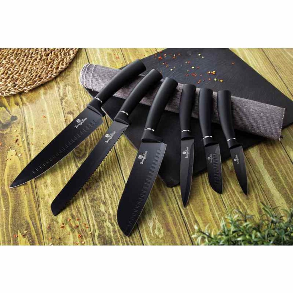 BERLINGERHAUS Sada nožů s antibakteriálním povrchem 6 ks Royal Black Collection BH-2383 - čepele z nerezové oceli s antiadhézním nepřilnavým povrchem