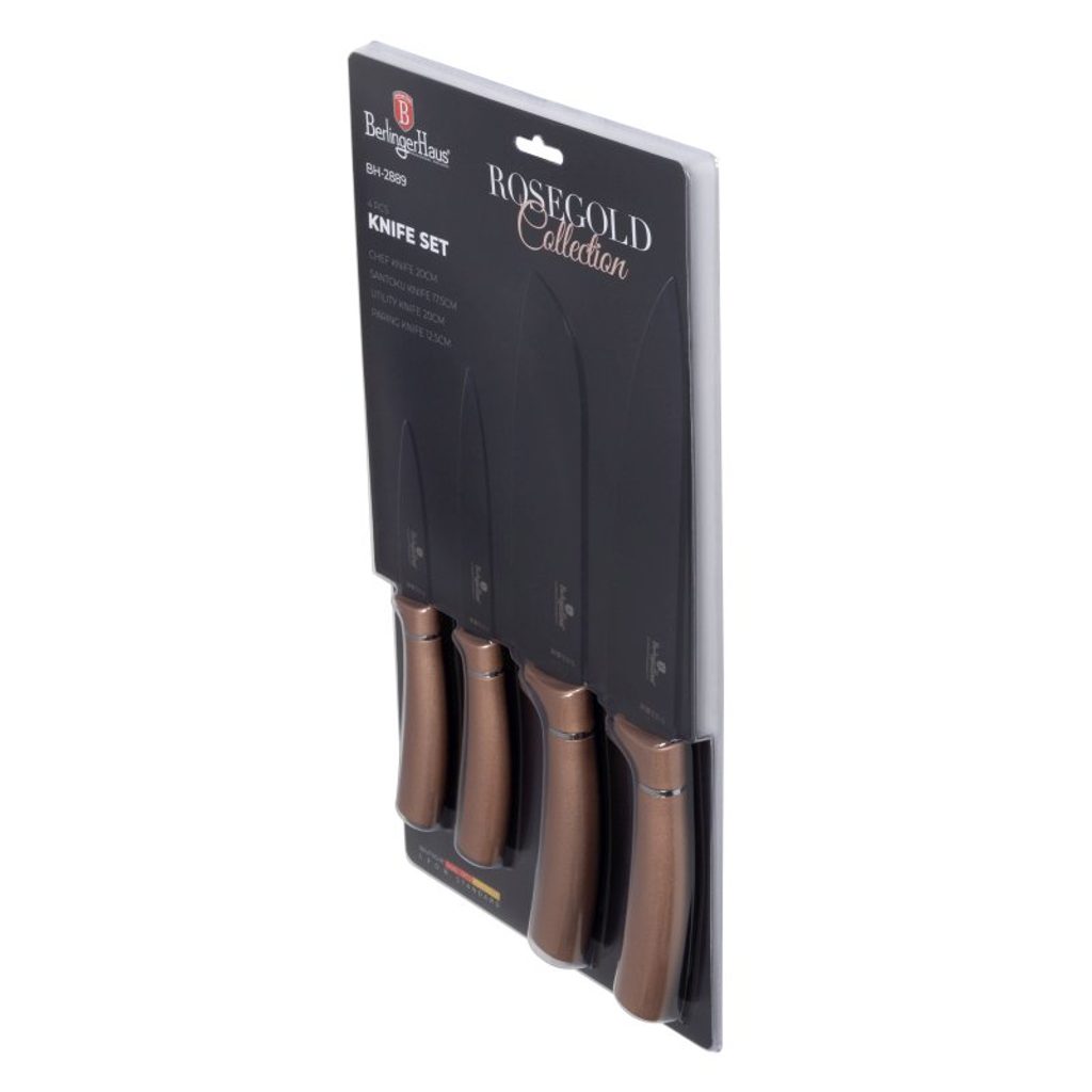BERLINGERHAUS Sada nožů s nepřilnavým povrchem 4 ks Rosegold Metallic Line BH-2889 - Materiál: nerezová ocel s černou nepřilnavou vrstvou