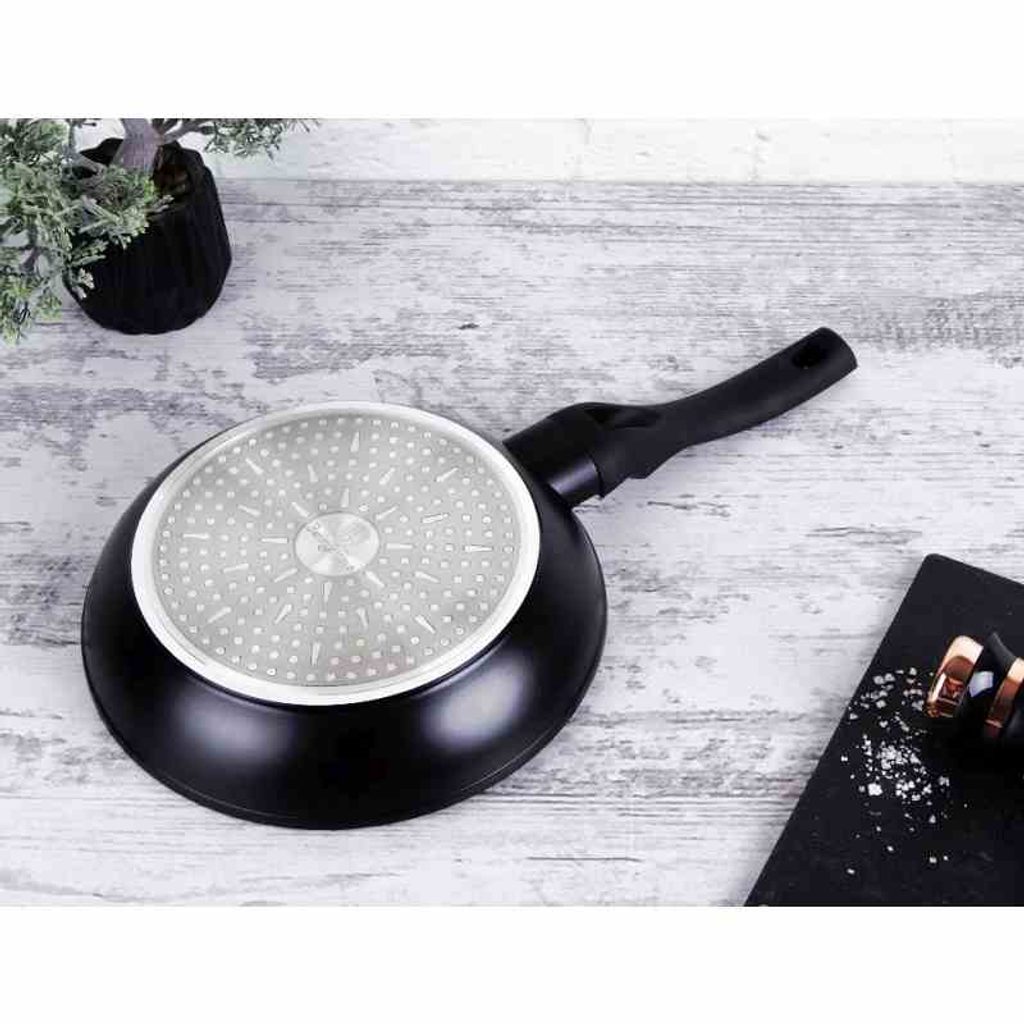 - 3vrstvý povrch s mramorovým designem charakteristický svou dokonalou nepřilnavostí, připravované potraviny se nepřipalují a díky tomu se pánev velmi jednoduše čistí