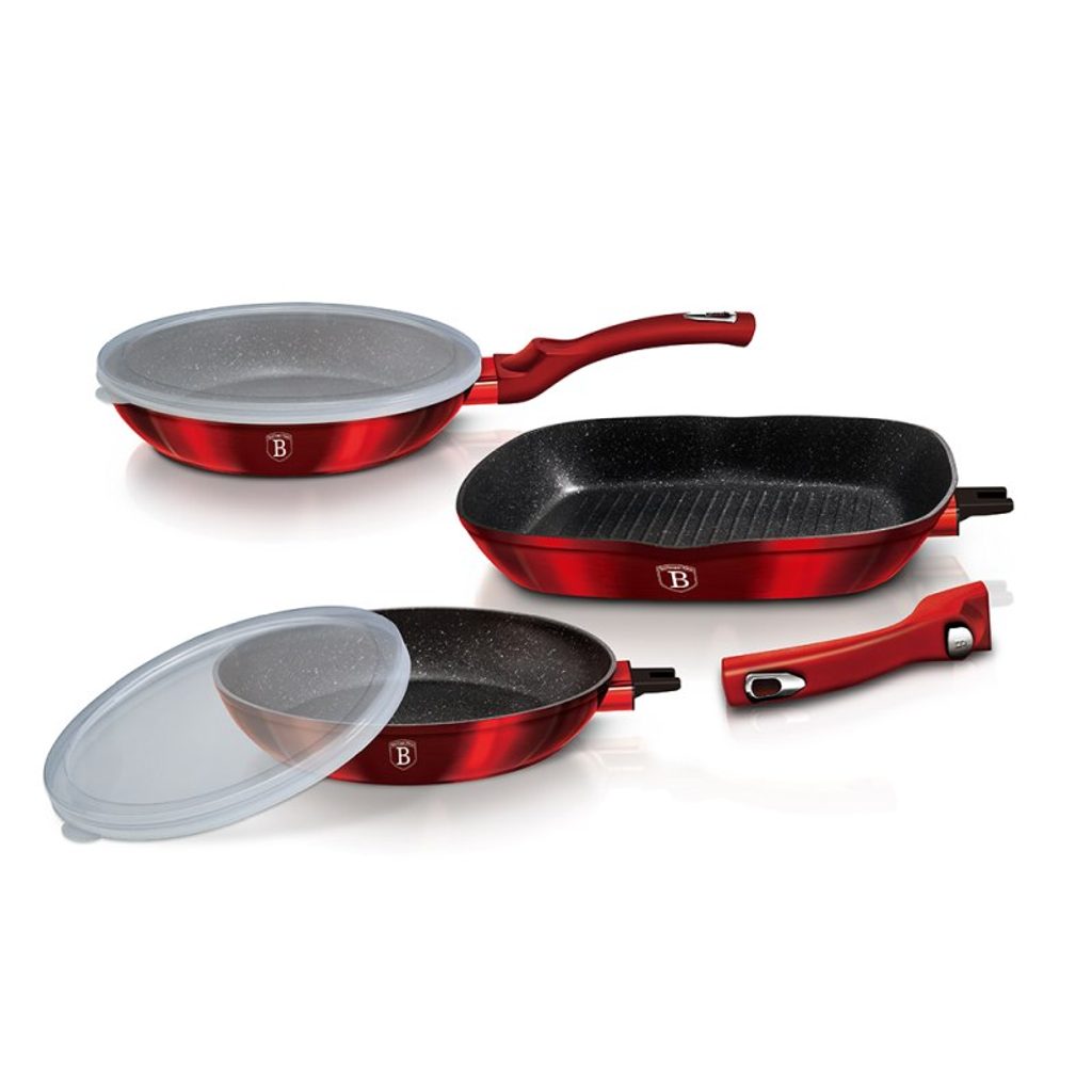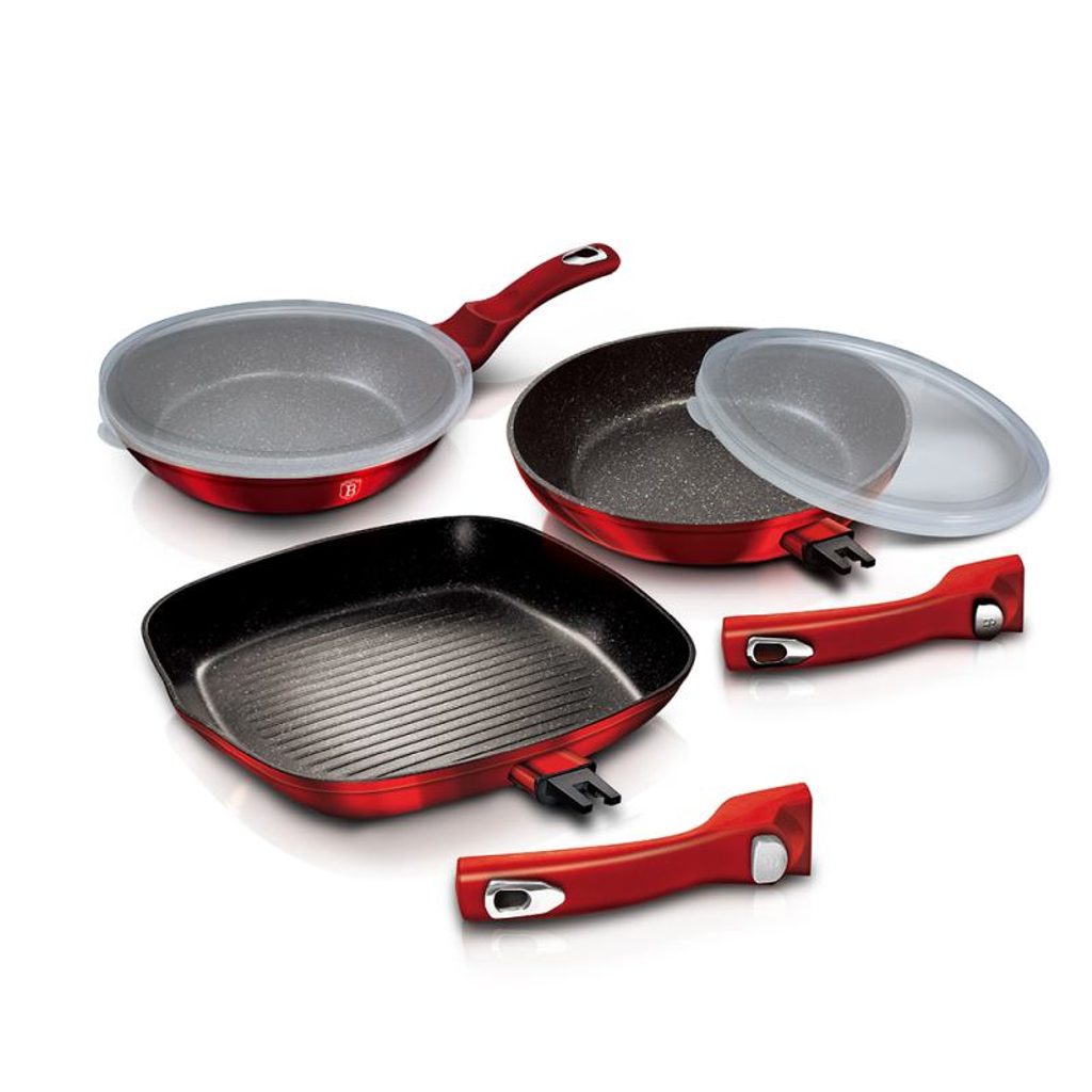 BERLINGERHAUS Sada pánví s odnímatelnou rukojetí 5 ks Burgundy Metallic Line steak BH-6796