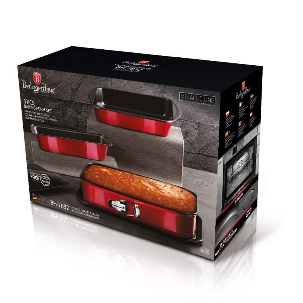 BERLINGERHAUS Sada pečicích forem s titanovým povrchem 3 ks Burgundy Metallic Line BH-7632