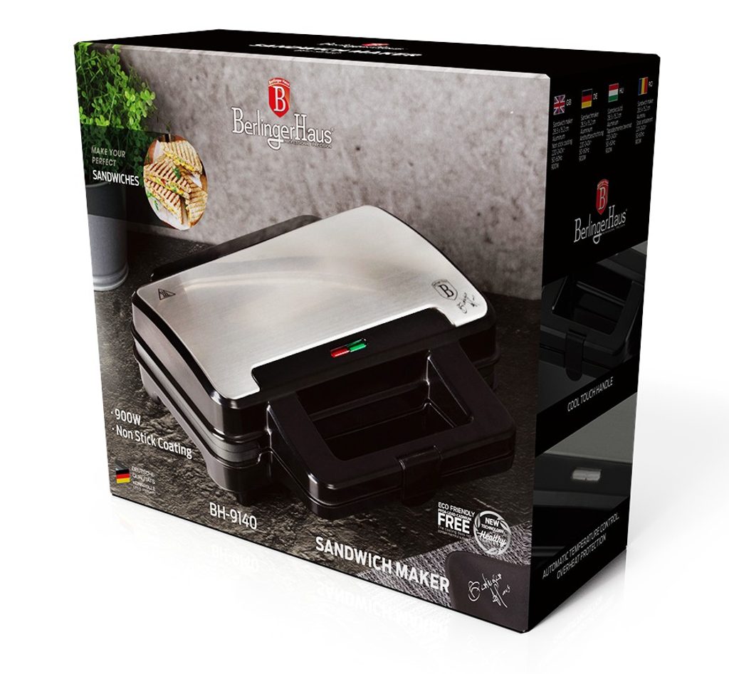 BERLINGERHAUS Sendvičovač s nepřilnavým povrchem 900 W Black Silver Collection BH-9140