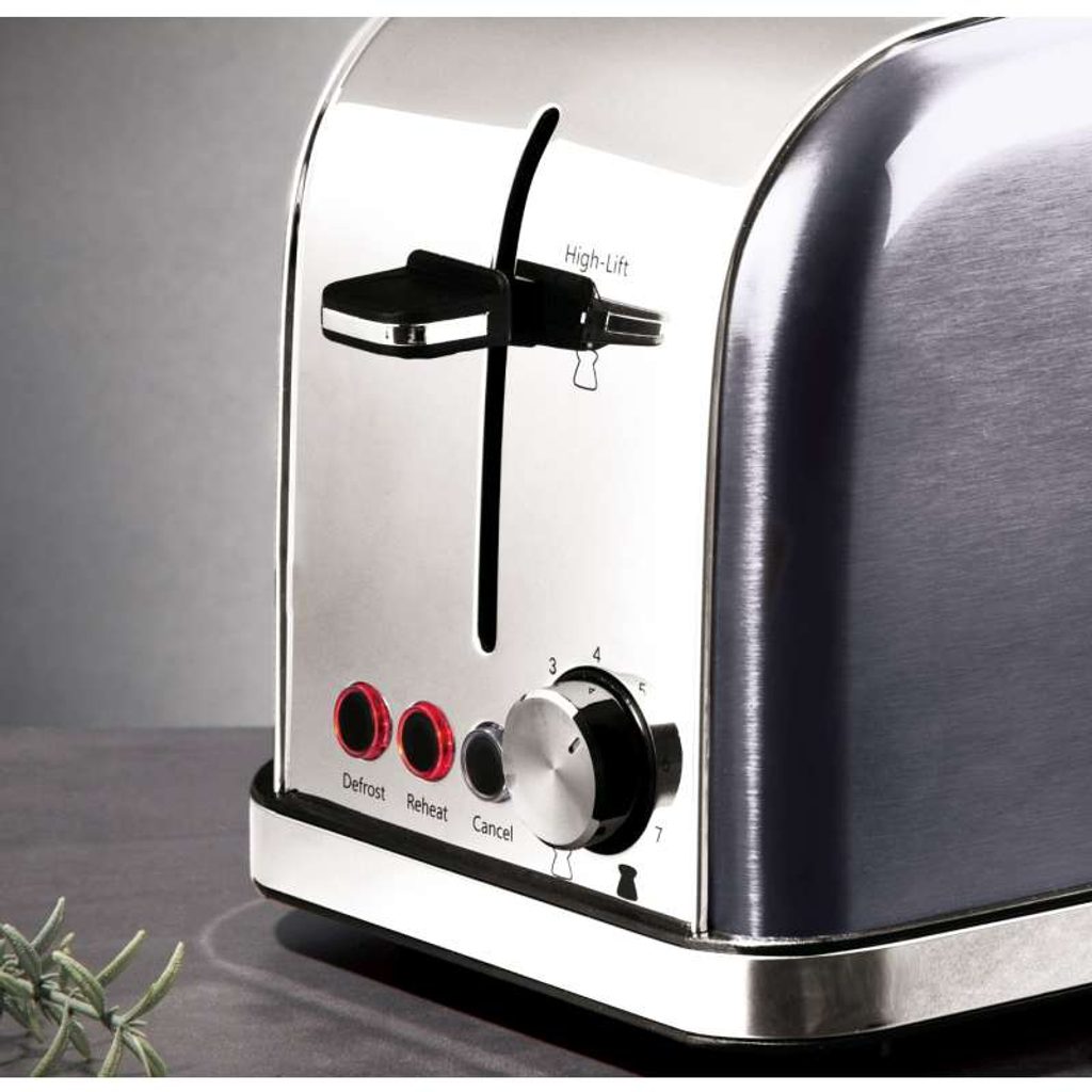 Materiál tohoto produktu je: nerezová ocel - 7 stupňů nastavení intenzity opečení - automatické vysunutí pečiva - automatické centrování pro rovnoměrný ohřev tenkých i silných toastů - protiskluzová úprava spodní základny - funkce: - defrost / rozmrazování, rozpékání mraženého pečiva - reheat / opakovaný ohřev a dohřívání - cancel / okamžité přerušení provozu před koncem nastaveného času - funkce high lift pro snadné vyjmutí malých kousků pečiva - vyjimatelná spodní část na odstranění drobků a díky tomu snadné čištění - příkon: 850 w - barva: tmavě šedá metalická - kolekce carbon pro line - značka: berlingerhaus