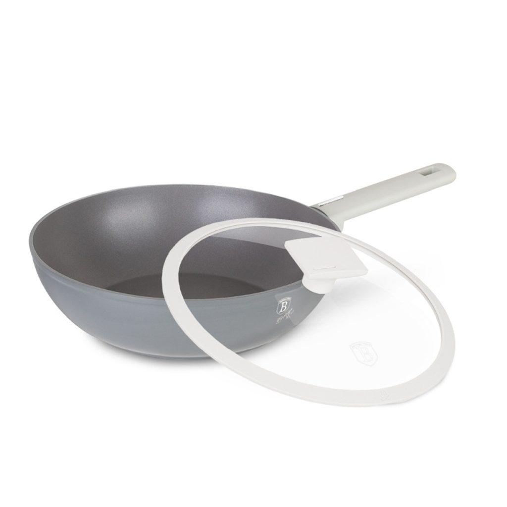BERLINGERHAUS Wok s titanovým nepřilnavým povrchem 28 cm Aspen Collection BH-7071 Univerzální wok s titanovým povrchem v šedém designu Aspen Collection. Moderní minimalistický design woku vás jistě zaujme hned na první pohled. Matný šedý povrch woku je navíc velmi praktický při dlouhodobém používání. Vnitřní vrstva je potažena 3vrstvým titanovým povrchem, který je charakteristický svou dokonalou nepřilnavostí. Připravované pokrmy se tak nepřipalují a díky tomu se wok velmi snadno čistí. Zároveň je vhodný pro zdravé vaření s minimem tuku nebo oleje, v závislosti na použitých surovinách klidně i bez jedinné kapky tuku. Titanový povrch, stejně jako ostatní použité materiály, neobsahují žádné škodlivé látky, vaření je tak zcela zdravé a hygienické. Zesílené Turbo indukční dno z nerezové oceli je kompatibilní se všemi druhy varných desek a spolehlivě funguje také na indukci. Jistě oceníte tepelně izolovanou rukojeť, která se při vaření nezahřívá a zůstává stále chladná. Wok Aspen je vhodná pro každodenní vaření, dušení i smažení, perfektně bude vypadat i při servírování hotových jídel přímo na váš stůl.