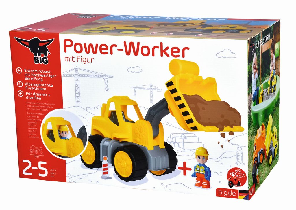 Kolový nakladač z řady Power Worker z kvalitního plastu. S pohyblivými částmi. Pneumatiky z měkkého plastu. Součástí figurka o velikosti 10 cm. Po použití v písku lze hygienicky vyčistit pod tekoucí vodou. Délka 47 cm. Rozměry: 47 x 20 x 30 cm.