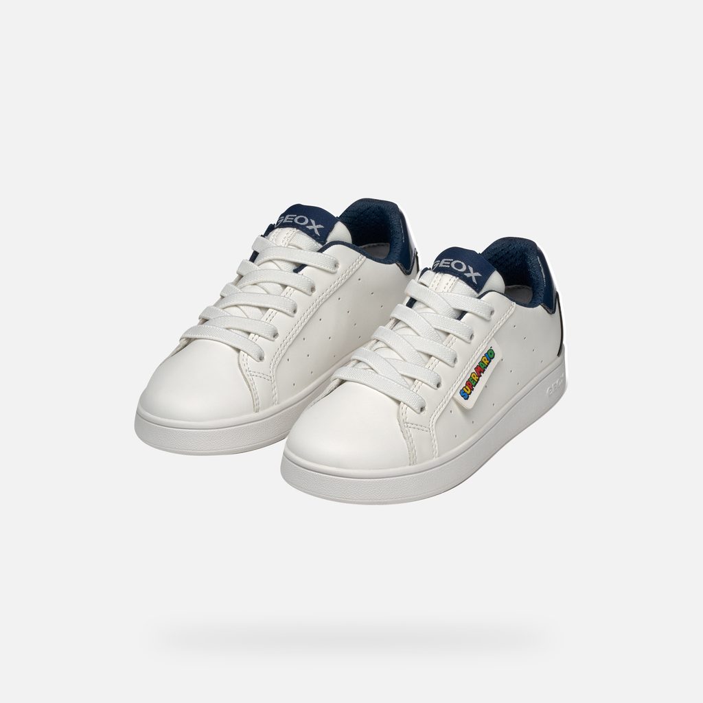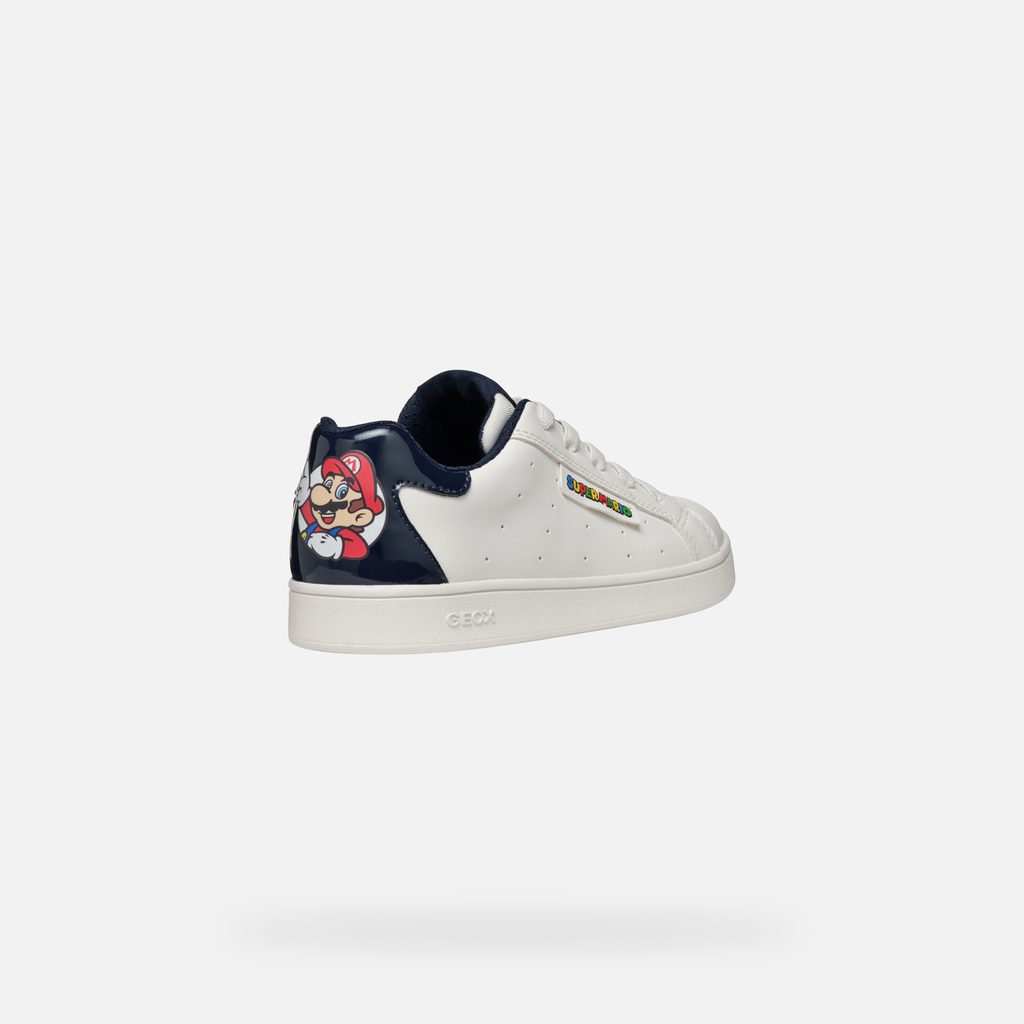 Stylové bílé tenisky Geox Eclyper Boy s grafikou Super Mario, které promění každý krok vašeho syna v sebevědomé dobrodružství plné zábavy a pohodlí.