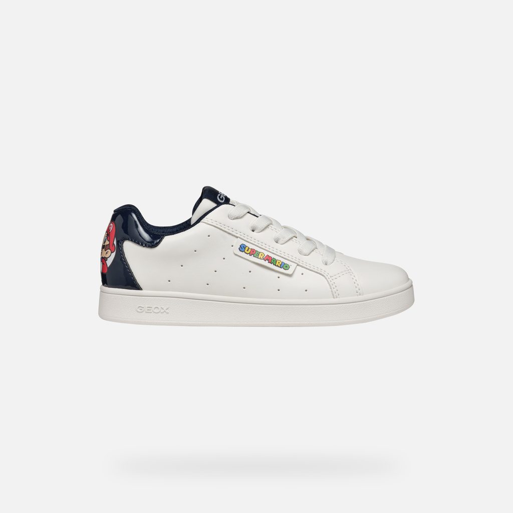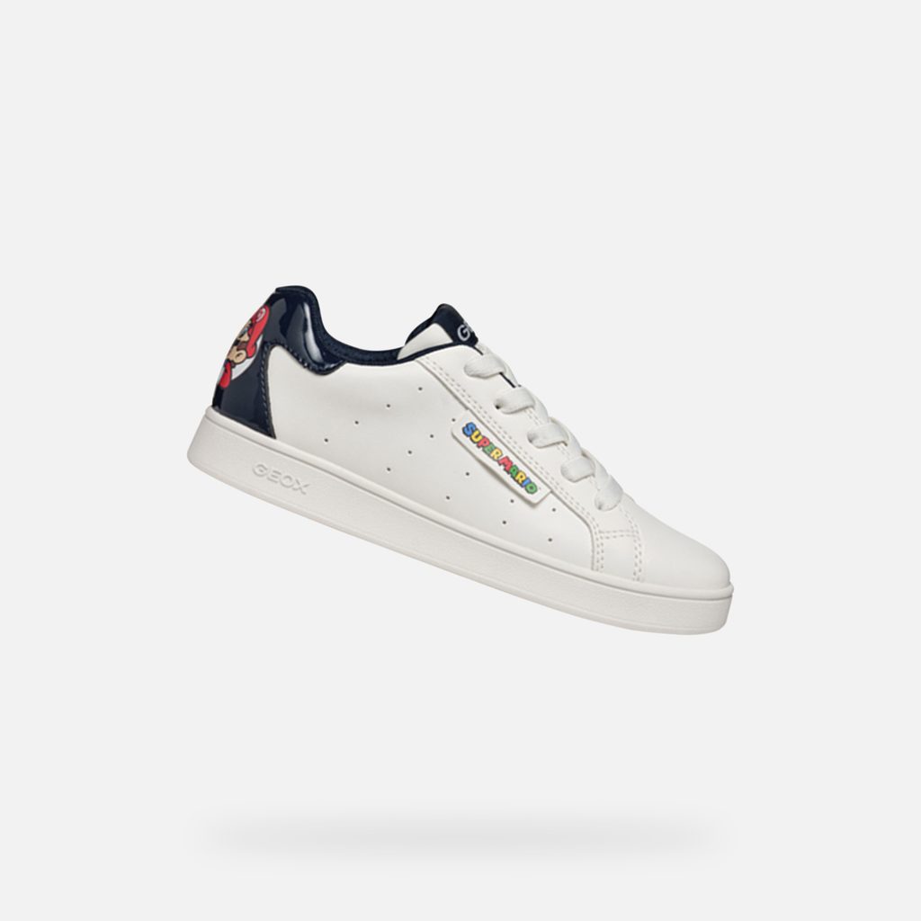 Stylové bílé tenisky Geox Eclyper Boy s grafikou Super Mario, které promění každý krok vašeho syna v sebevědomé dobrodružství plné zábavy a pohodlí.