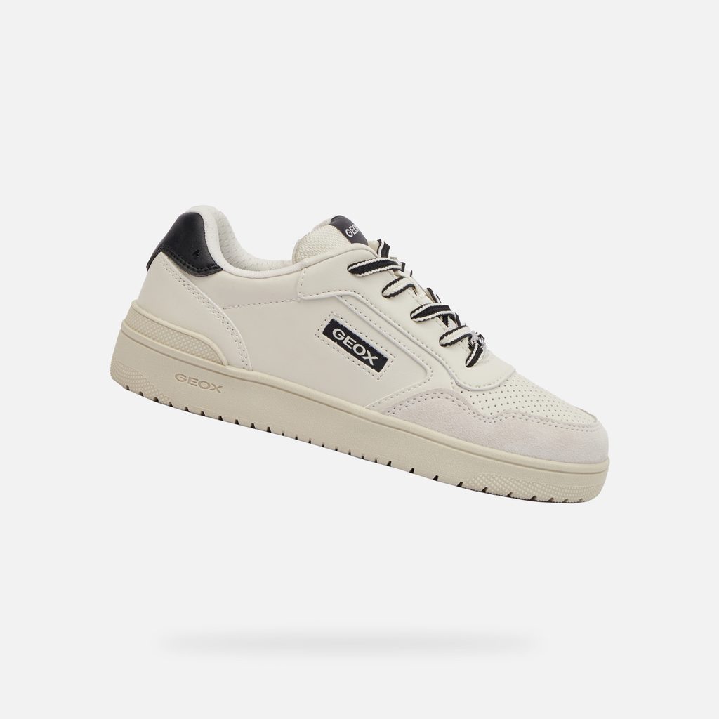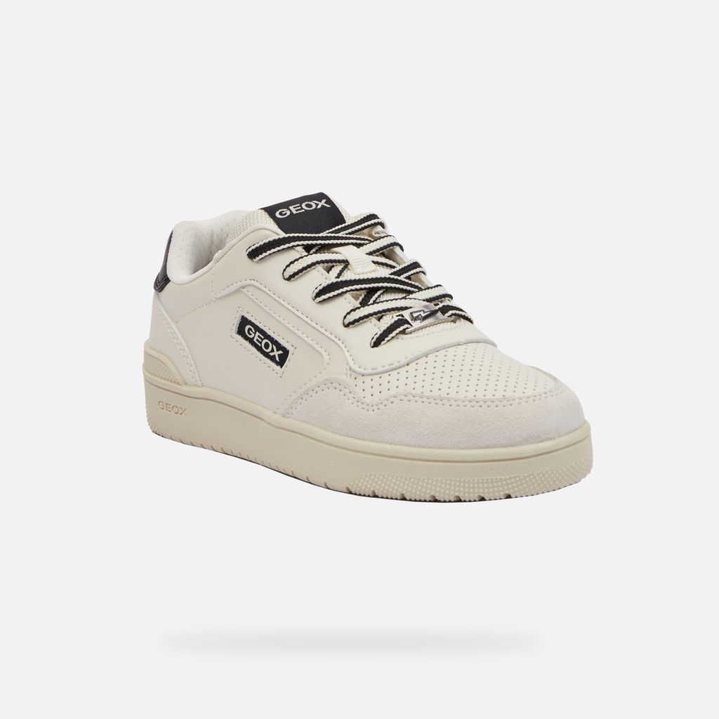 Chlapecké tenisky Geox Washiba v elegantním béžovém provedení s černými detaily zaujmou svým moderním designem. Perforovaná špička zajišťuje dodatečnou ventilaci, zatímco kombinace hladkých povrchů a kvalitního prošívání dodává botám prémiový vzhled.