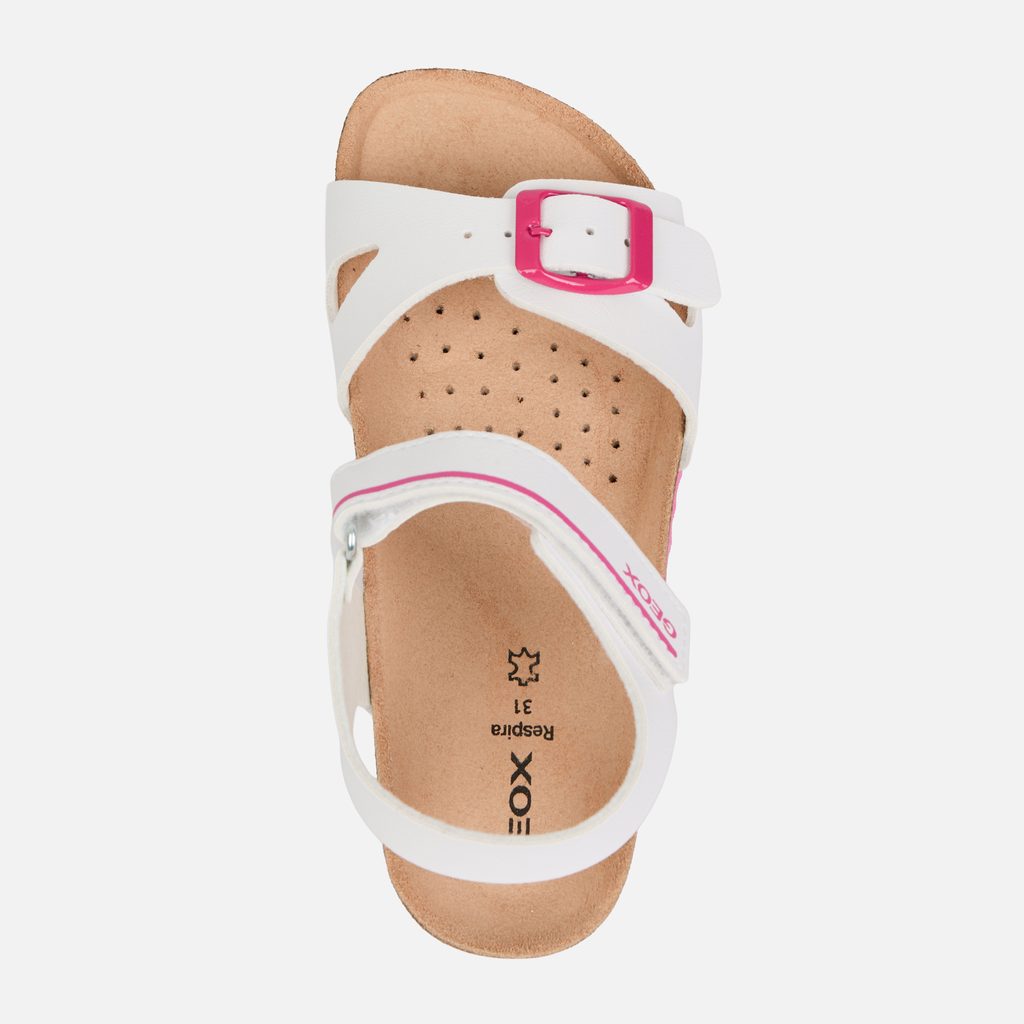 Bezstarostné letní dny plné pohybu, her a objevování nových míst s kamarády. Dívčí sandály Geox Adriel Girl v bílo-růžové barvě přinášejí lehkost a snadné obouvání pro každodenní dobrodružství.