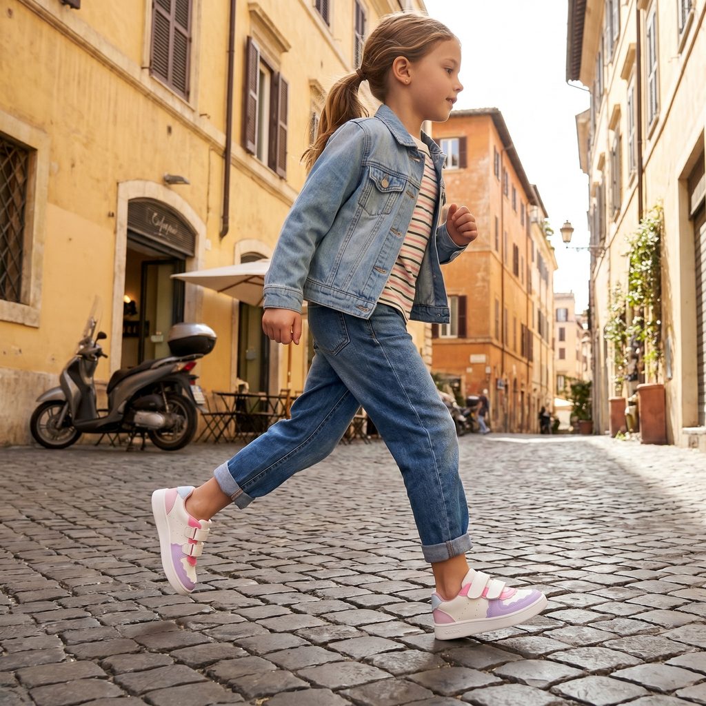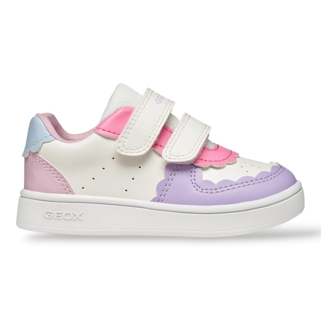 Tyto tenisky v kombinaci bílé a světle fialové barvy zaujmou čistým, nadčasovým vzhledem, který se snadno kombinuje s každodenními outfity. Lehká a prodyšná konstrukce podporuje komfort při nošení, zatímco flexibilní podešev umožňuje přirozený pohyb dětského chodidla. Díky praktickému zapínání na suché zipy se boty snadno obouvají i zouvají, což ocení děti i rodiče.