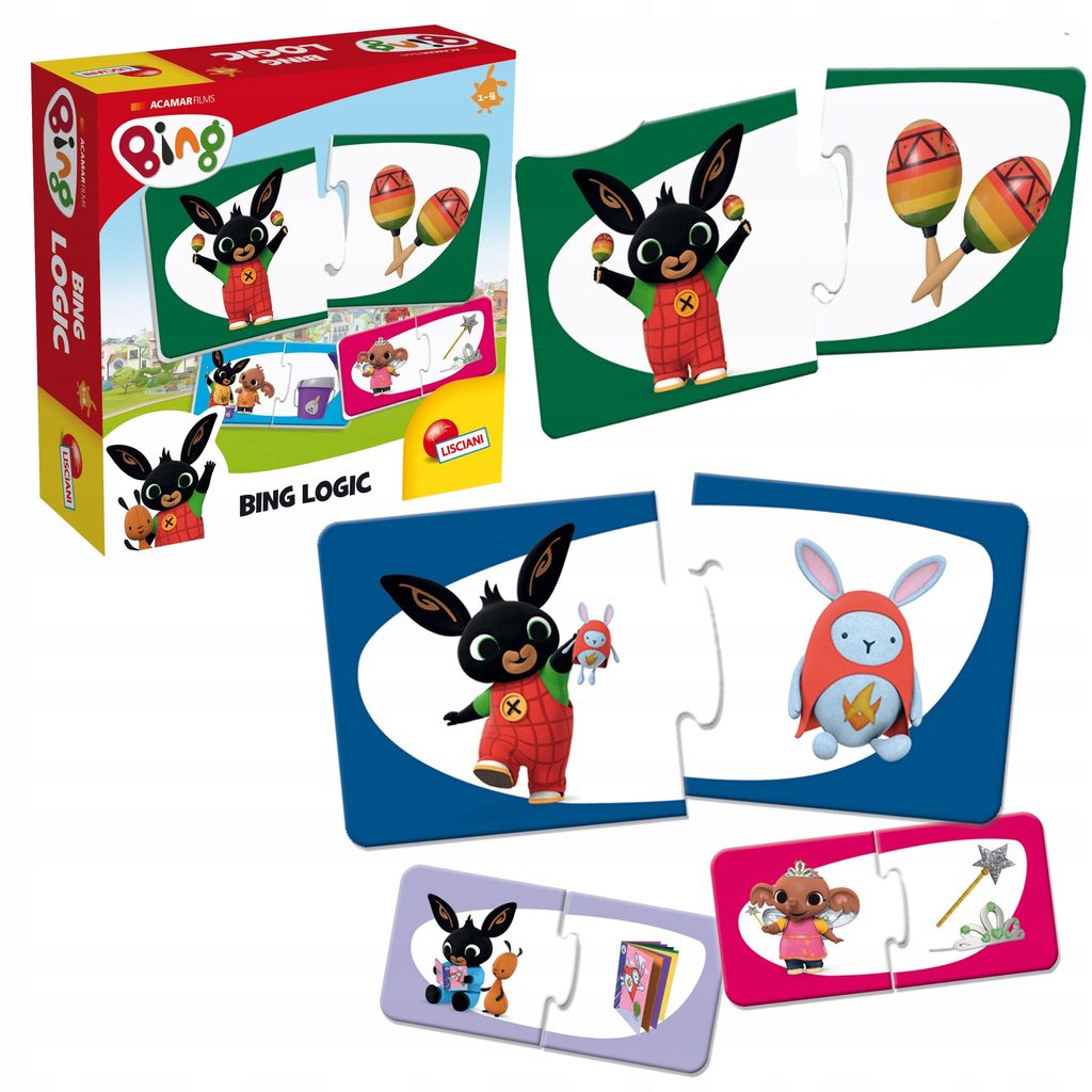 Sada jednoduchých dvojdílných skládačeks obrázky králíčka Binga a jeho přátel je určena pro děti, které s puzze začínají. Velké a pevné dílky usnadňují dětem skládání.