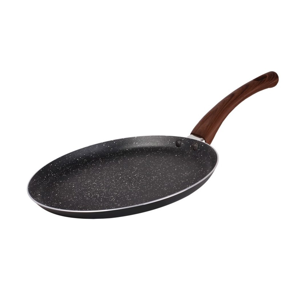 Toužíte po dokonale tenkých a rovnoměrně opečených palačinkách, které se nikdy nepřichytí? Tato elegantní pánev v tmavě šedé barvě je tím pravým pomocníkem pro všechny milovníky sladkých i slaných pochoutek. Díky hliníkovému tělu s mramorovým nepřilnavým povrchem vám palačinky budou klouzat po pánvi jedna radost – bez zbytečného tuku a bez starostí. Měkká ergonomická rukojeť zajistí pohodlné držení. Je navržena s ohledem na zdraví i planetu – bez škodlivých látek jako je PFOA, olovo či kadmium.