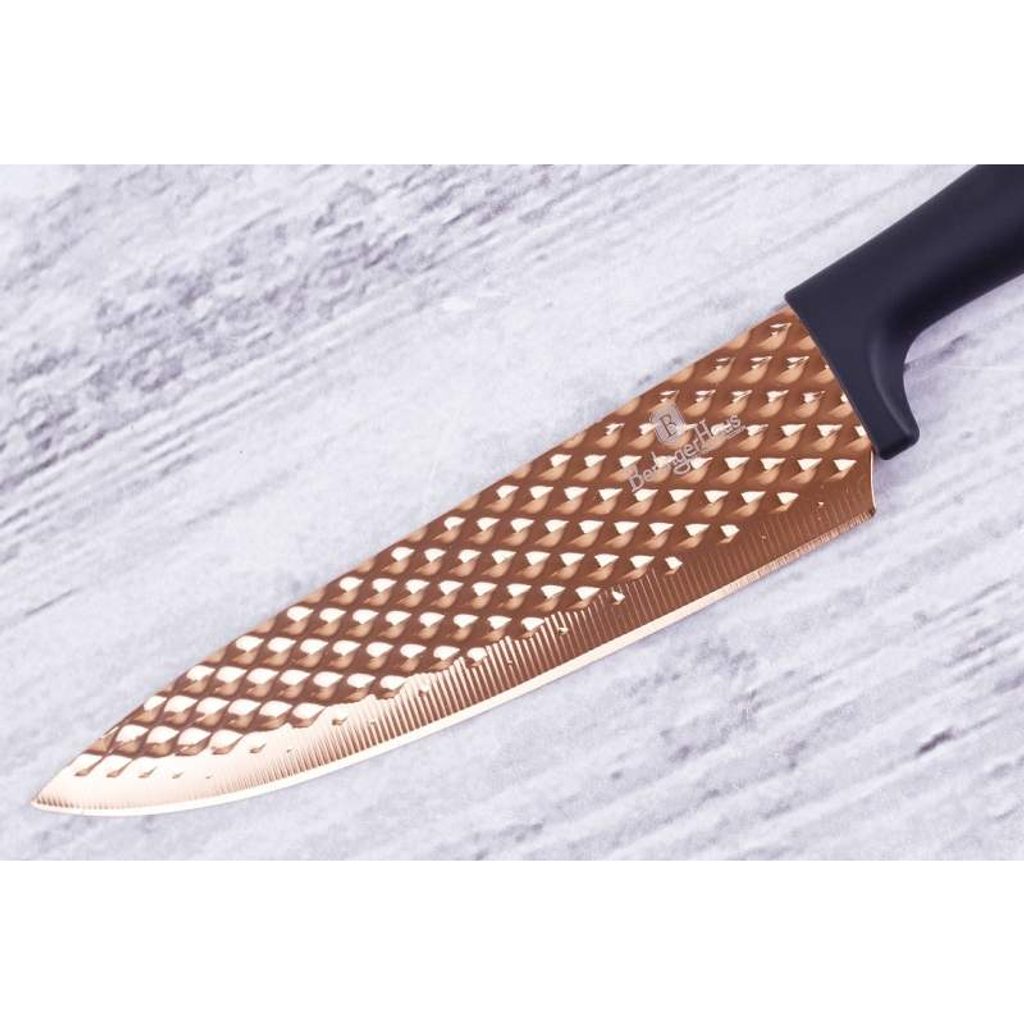 Sada nožů s nepřilnavým povrchem 5 ks Black Rose Collection je výbornou alternativou pro kuchaře různých úrovní, na jejíž výrobu byl použit kvalitní materiál: nerez ocel s nepřilnavým povrchem, vynikají perfektní ostrostí čepele a designem. Velmi oceníte i ergonomicky tvarovanou rukojeť, díky které se vám nože budou skvěle držet. Celá sada je dílem výrobce BERLINGERHAUS, jež se výrobě nožů věnuje poměrně dlouho a jsou řádně odzkoušeny.
