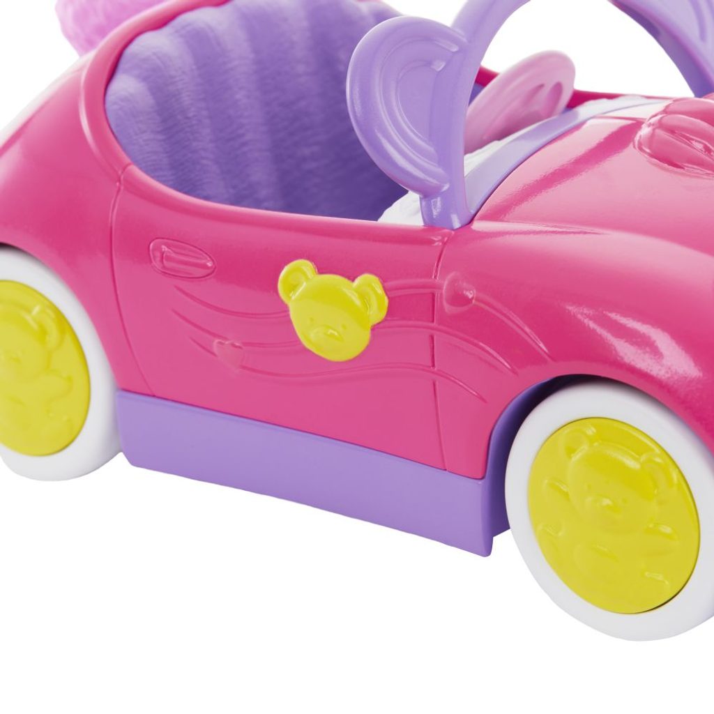 Vyrazte na výlet s panenkou Chelsea™ a jejím medvídkem v roztomilém kabrioletu! Panenka Chelsea™ a její medvídkové autíčko s pojízdnými koly a roztomilým designem medvídka je dokonale stvořené pro nejmladší sestřičku Barbie®. Děti mohou vyrazit s těmito dvěma nejlepšími kamarády na dobrodružnou cestu kamkoli, kam je zaveze jejich fantazie!