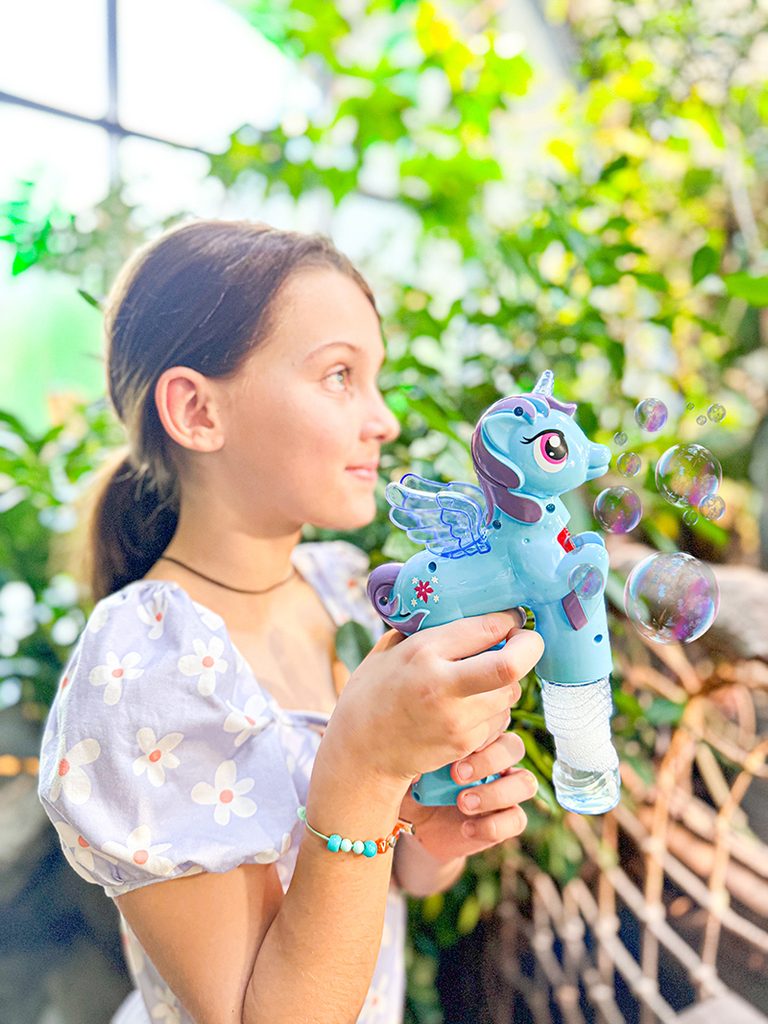 Bublifuk na baterie s jednorožcem. Pouhým zmáčknutím spouště děti vytvoří záplavu bublin. Při tvorbě bublin jednorožec hraje. Bublifuk na baterie s jednorožcem. Pouhým zmáčknutím spouště děti vytvoří záplavu bublin. Při tvorbě bublin jednorožec hraje.