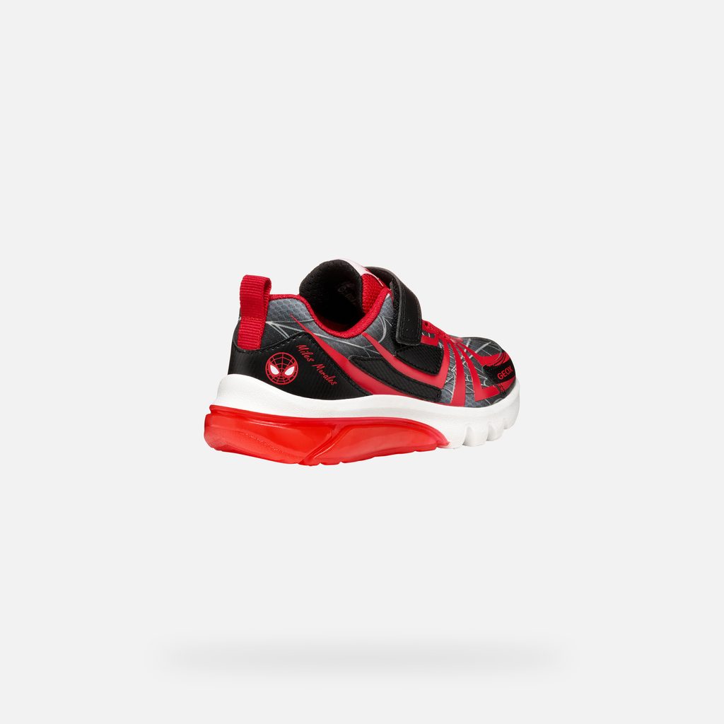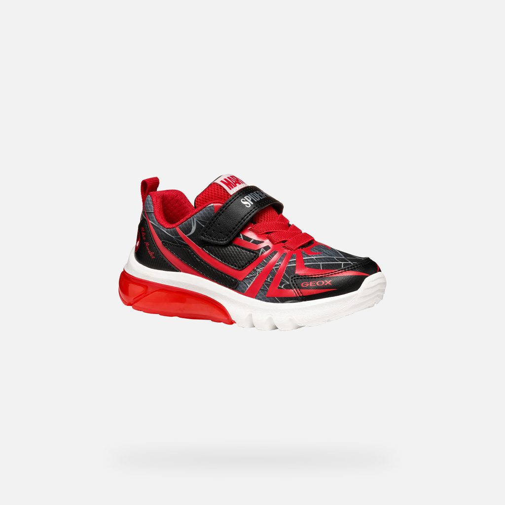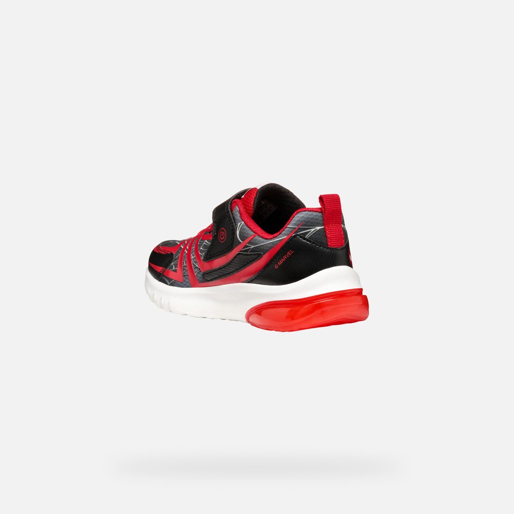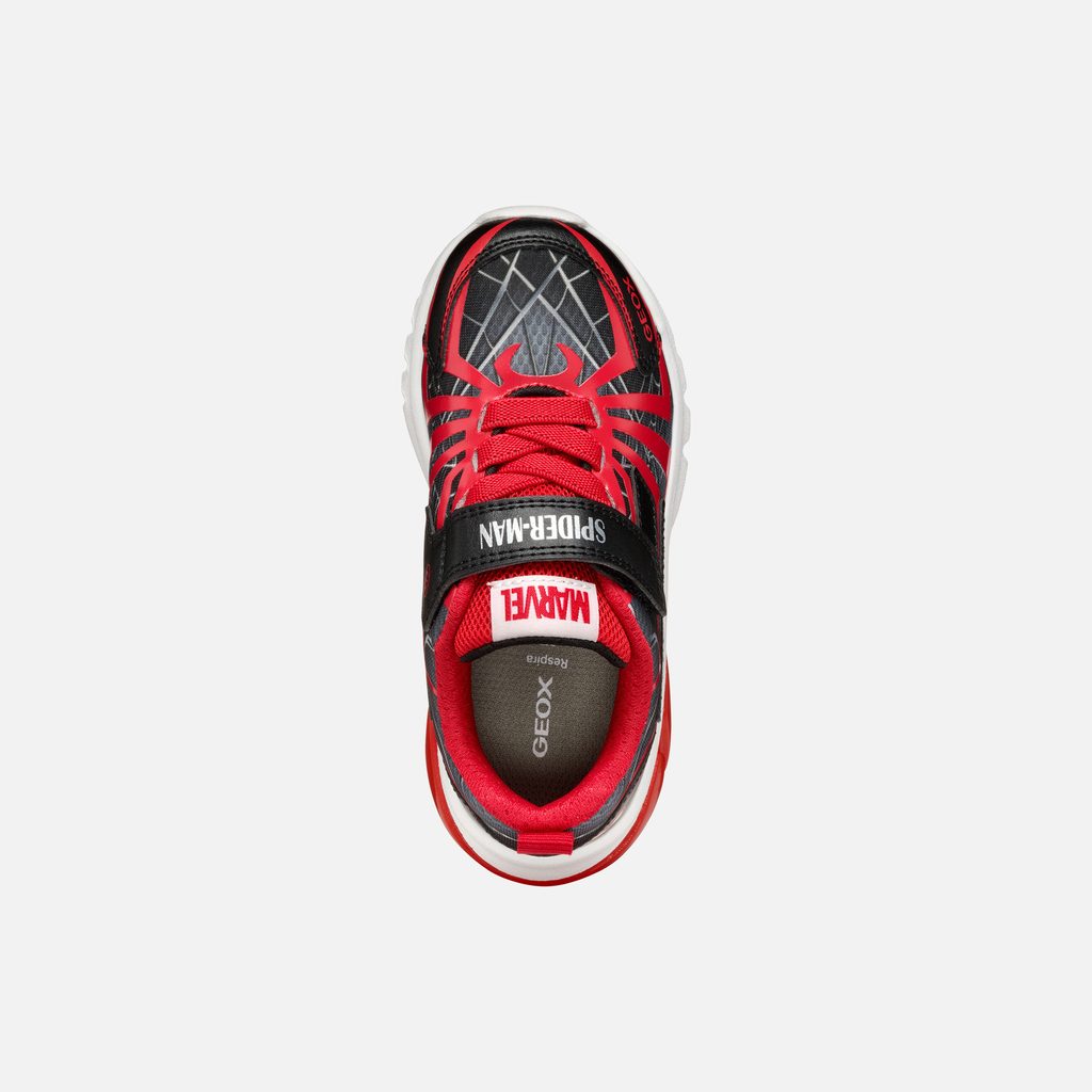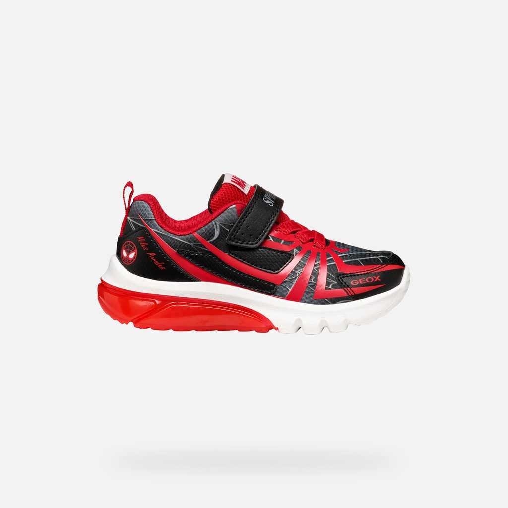 Tyto tenisky jsou skvělou volbou pro všechny malé superhrdiny, kteří chtějí být stylově a pohodlně obuti. Dopřejte svému dítěti radost z originálního designu a špičkového komfortu. Stylové dětské tenisky Geox ze speciální kolekce Marvel nadchnou každého mladého fanouška Spider-Mana. Černé provedení s červenými detaily zdobí ikonický pavoučí vzor, logo Spider-Mana a nápisy MARVEL a SPIDERMAN na pásku. Bota je doplněna o svítící prvek v červené průsvitné podrážce.