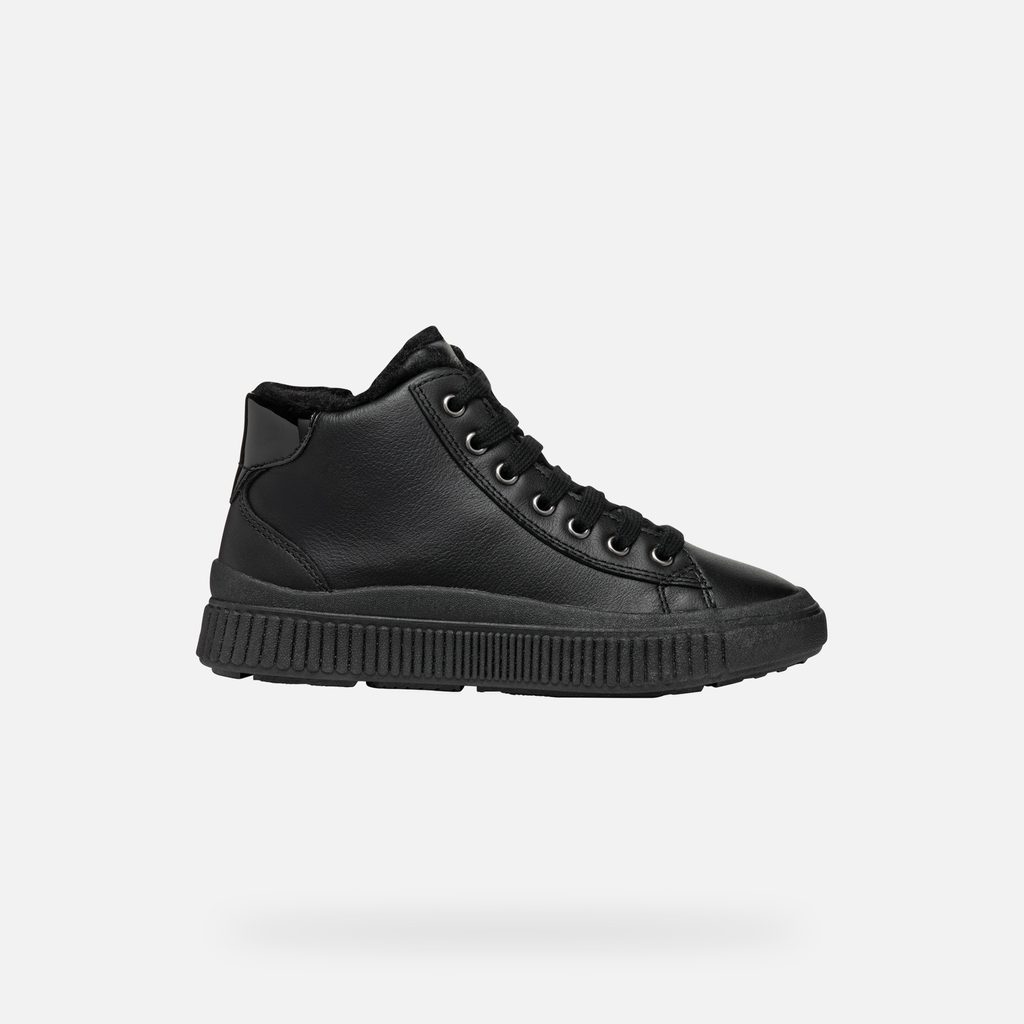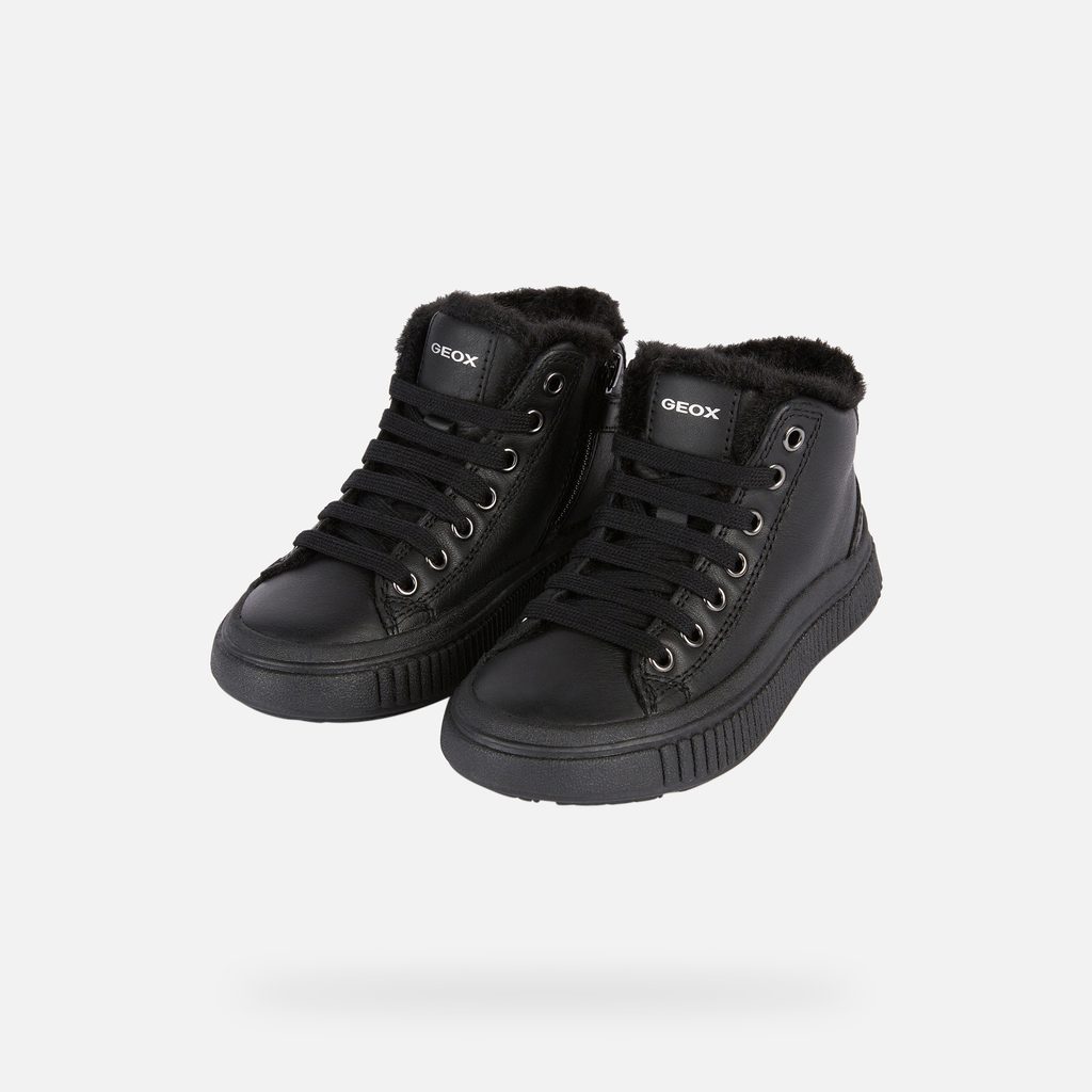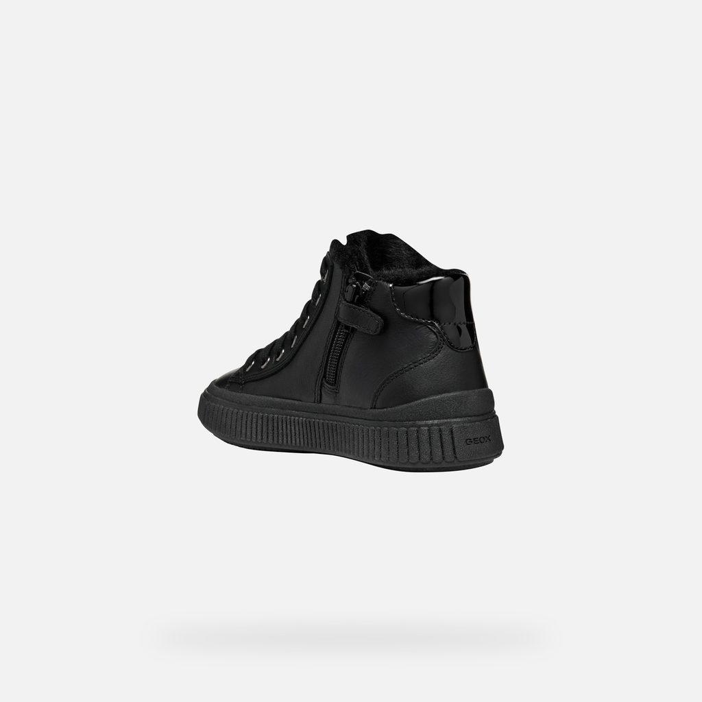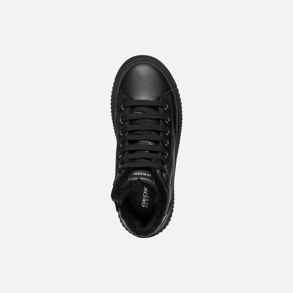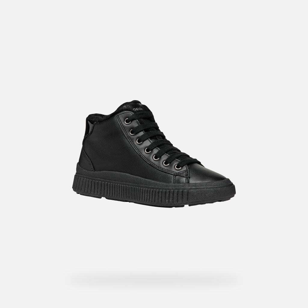 Černé dívčí tenisky Geox Laquinny s elegantním matným povrchem a robustní podešví.