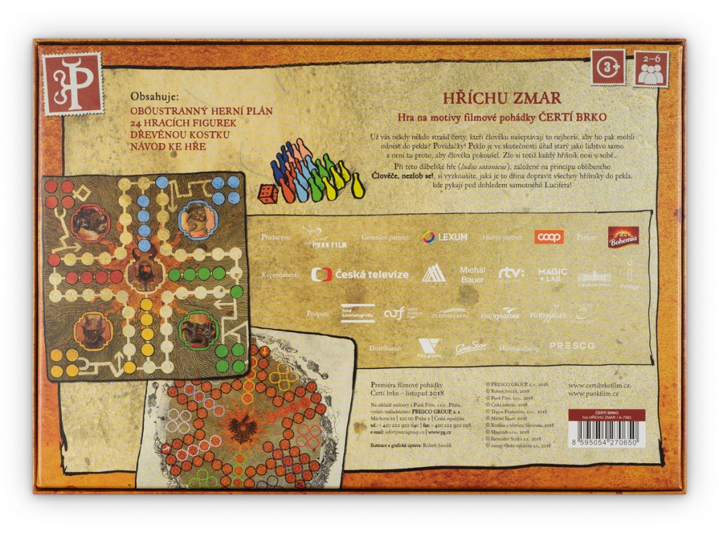Tradiční hra ve výjimečném provedení přináší zábavu celé rodině. Je určena hráčům již od tří let a oboustranný herní plán umožní hrát jak skupině menší (křížový plán pro 2–4 hráče), tak skupině větší (šestiúhelníkový plán pro 2–6 hráčů). Každý z vás se ocitne dočasně ve funkci čerta, jehož úkolem je dopravit hříšníky, jejichž čas právě nadešel, z místně příslušné obce pod správou jednoho z podpekel (startovní domeček) co nejrychleji do pekla ústředního. Setká-li se některý čert cestou s jiným čertem na stejném políčku, vrací ho zpět na start. Čerte, nezlob se!