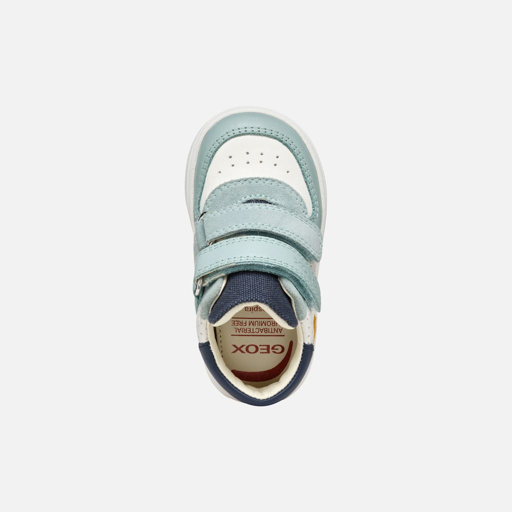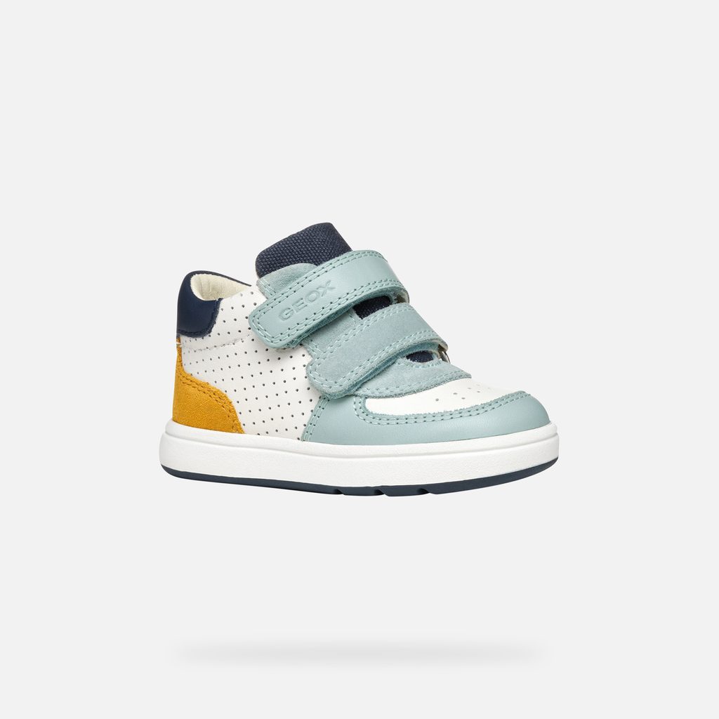 Dopřejte svému chlapečkovi pohodlí a styl s těmito prvními botičkami Geox. Kombinace praktického designu a prodyšné technologie zajistí, že budou nožky v suchu a pohodlí po celý den. Dětské tenisky Geox Biglia v bílo-modré barevné kombinaci s výraznými žlutými detaily zaujmou svým sportovním designem. Bota je vybavena praktickým zapínáním na dva suché zipy, které zajišťují snadné obouvání a bezpečné držení na noze. Perforovaný vzor na bílé části svršku dodává botě jedinečný vzhled.