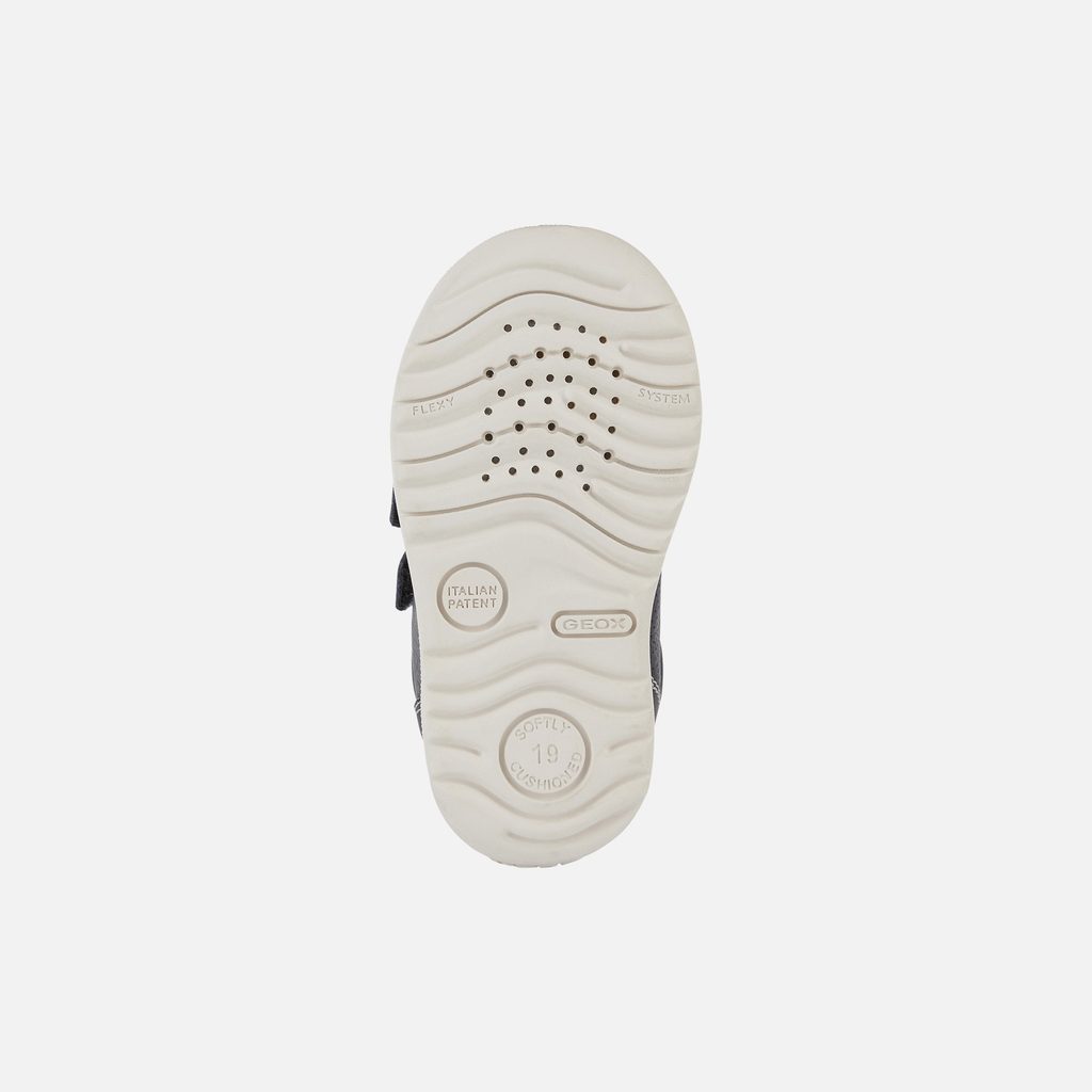 Vyberte svému malému průzkumníkovi kvalitní první botičky, které mu poskytnou potřebnou oporu a pohodlí při objevování světa. Chlapecká obuv Geox Macchia v tmavě modrém provedení je ideální volbou pro první kroky vašeho dítěte. Vyniká praktickým designem s dvojicí suchých zipů pro snadné obouvání, bílým kontrastním prošíváním a červeným detailem s logem na horním pásku.