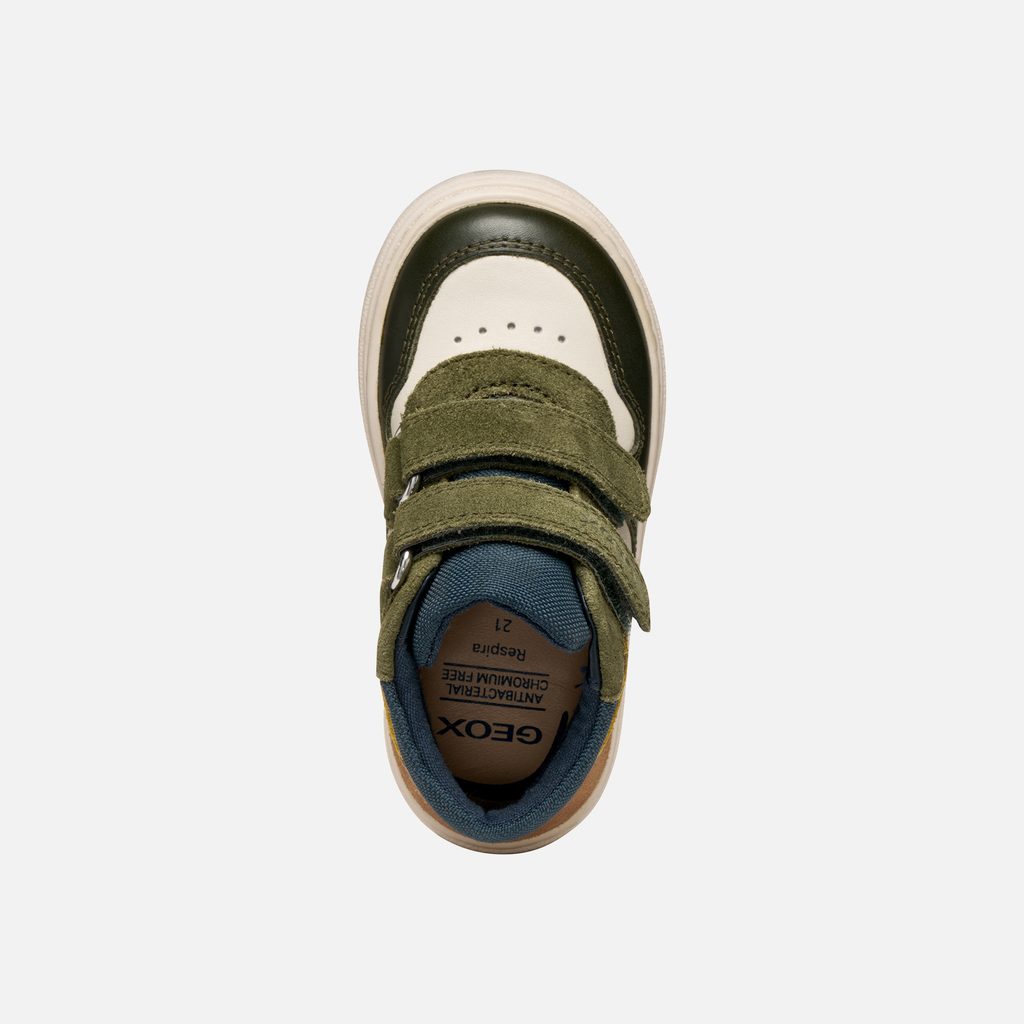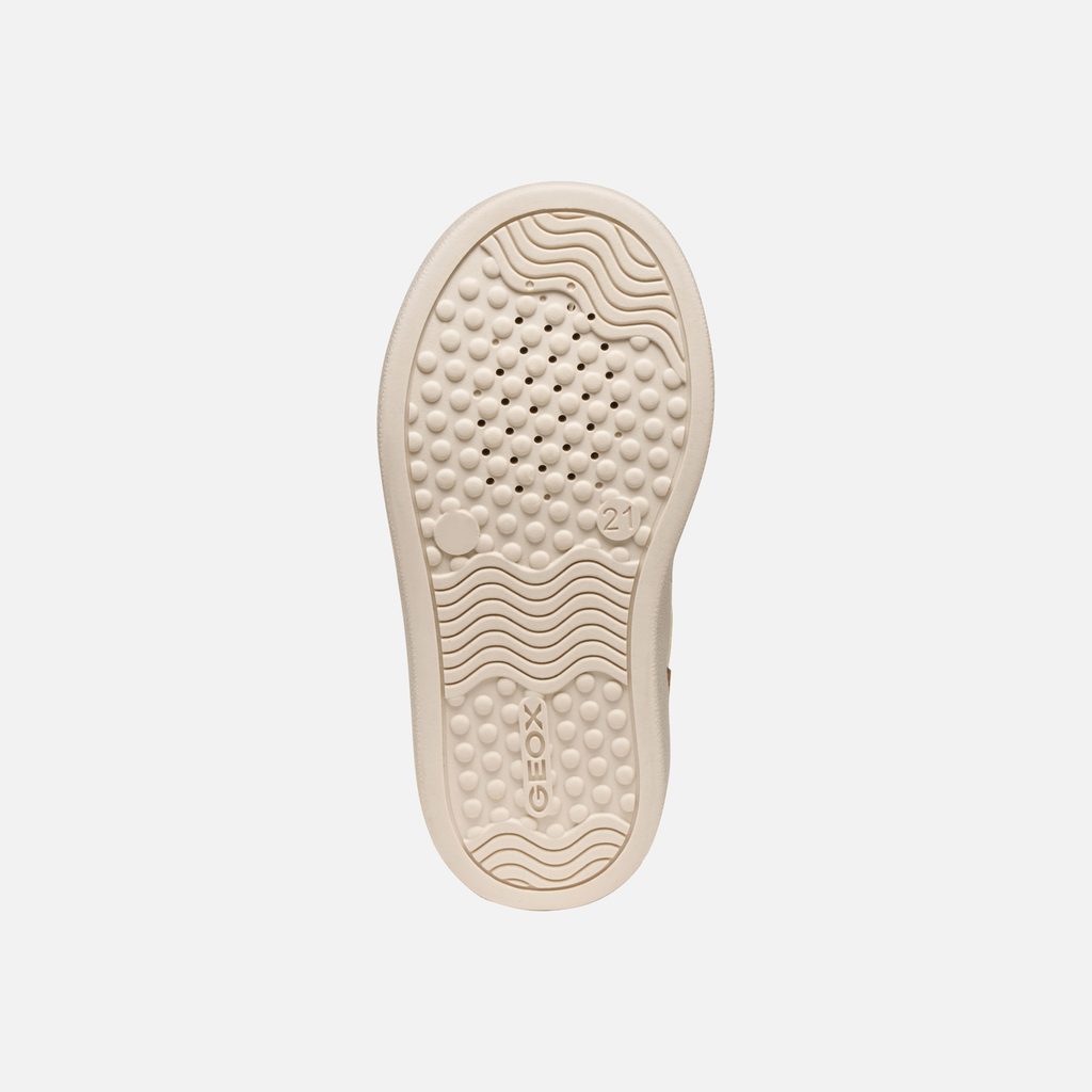 Krémová chlapecká kotníková obuv Geox Nashik s praktickými suchými zipy pro první kroky.