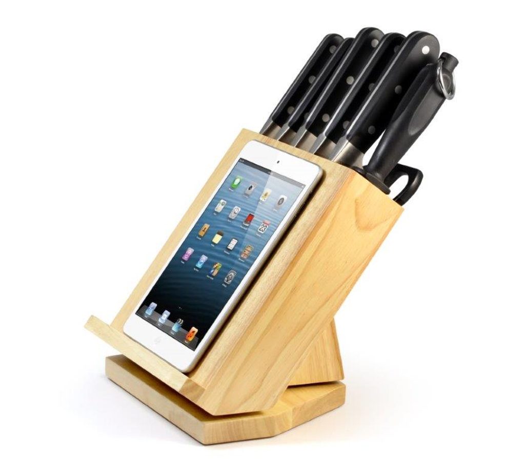 - z jedné strany stojan na tablet, mobil nebo kuchařku