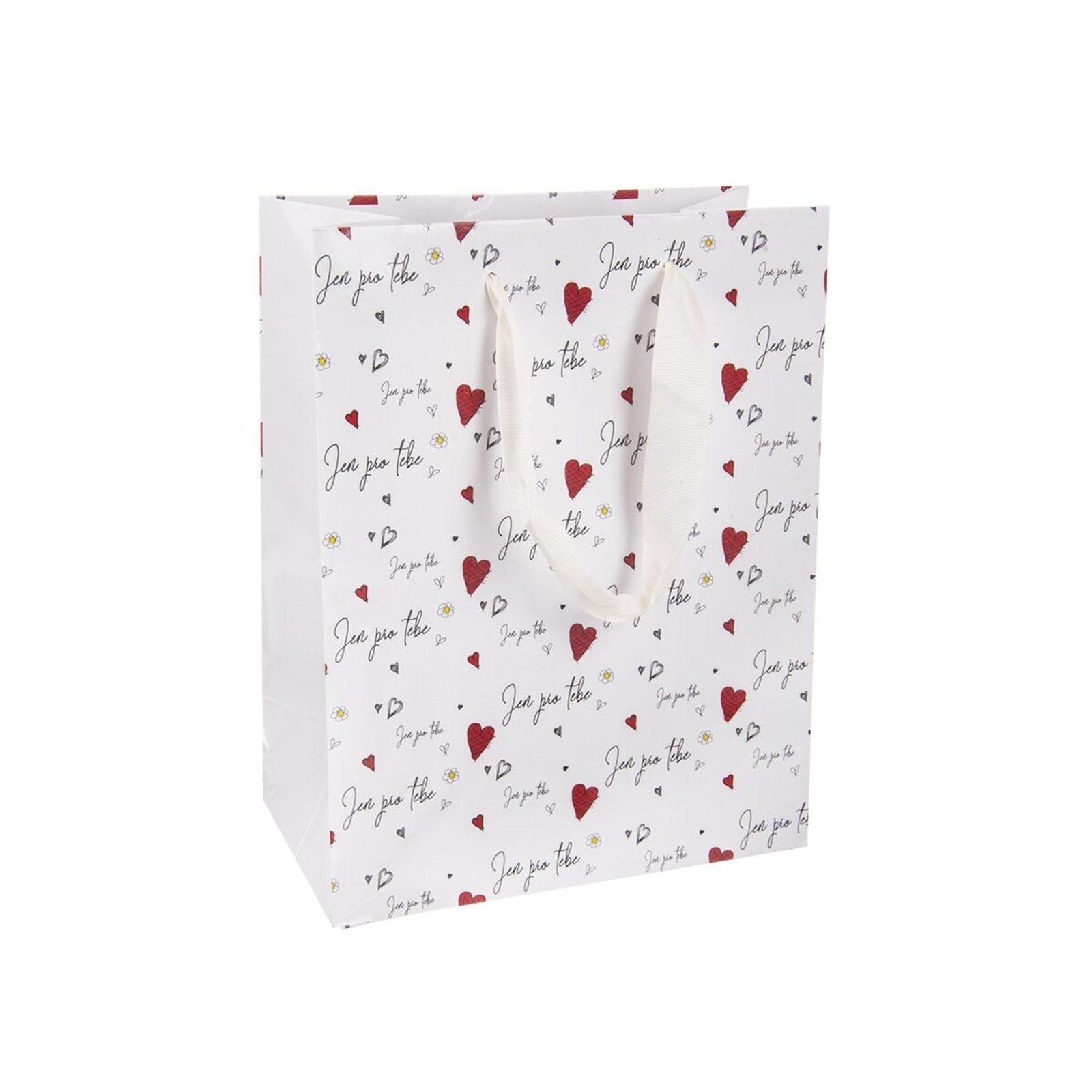 Dárková papírová taška s motivem Jen pro tebe. Originál dekor Orion. Materiál: papír, polyester (provázek). Rozměry: 18x10x23 cm.