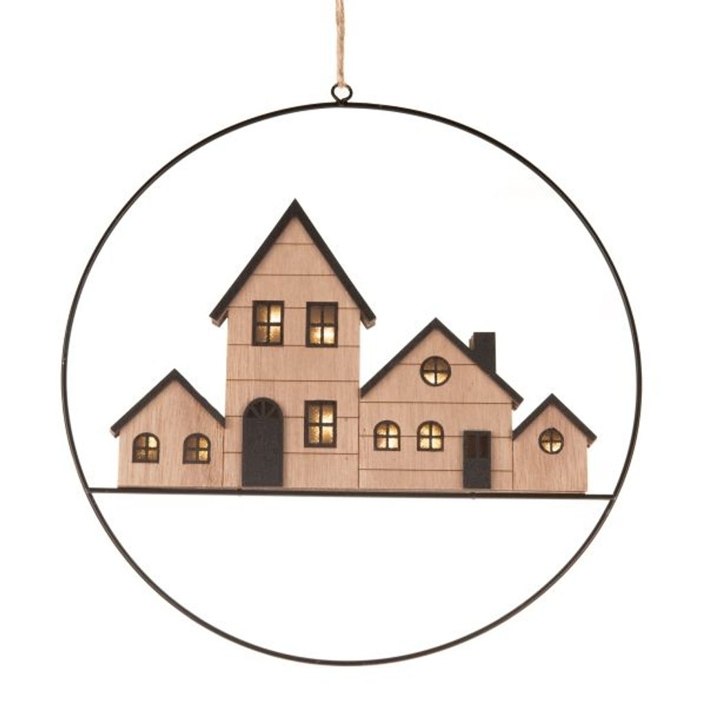 - dekorace DOMKY d25x2cm, LED osvětlení, závěs, dřevo?