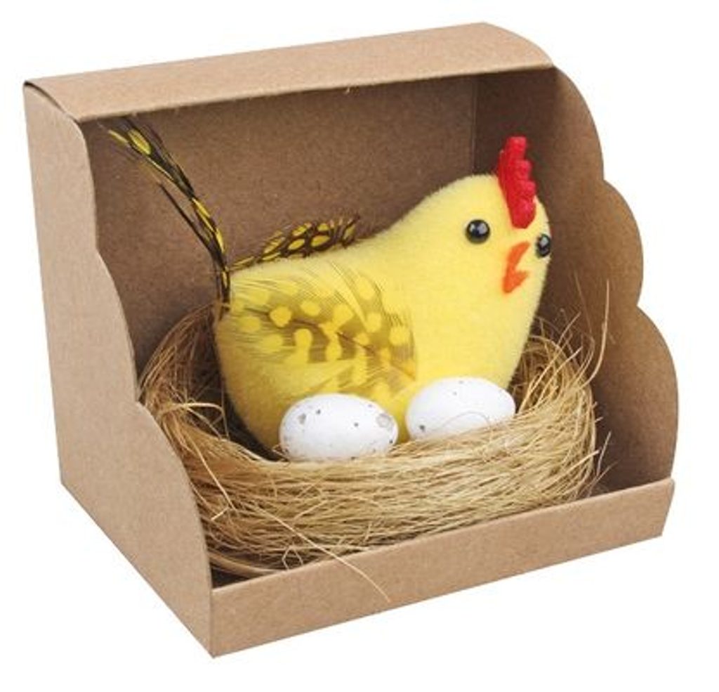 - dekorace Slepička žlutá 7cm, v hnízdě