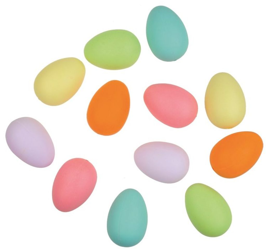 - dekorace Vajíčka 12ks, bar.pastel 6cm, plast