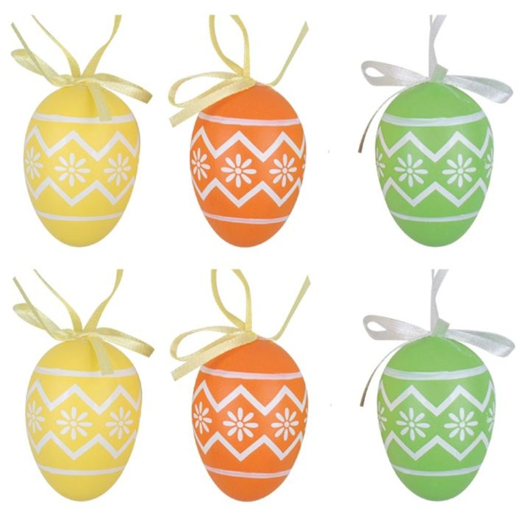 - dekorace VAJÍČKA mix barev 6cm, plast, 6ks, závěs