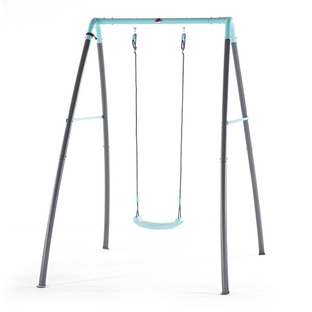 Dětská houpačka s kovovou konstrukcí a tryskou na výrobu mlhy