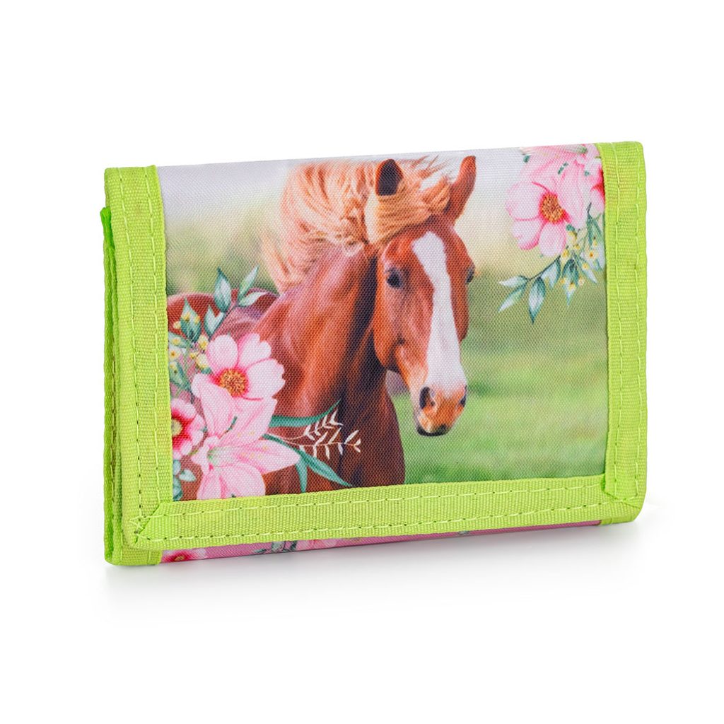 Praktická textilní peněženka na suchý zip. Vzadu je uzavíratelná kapsička na drobné, uvnitř jedna přihrádka na bankovky, šest kapsiček na karty a jedna průhledná kapsa.