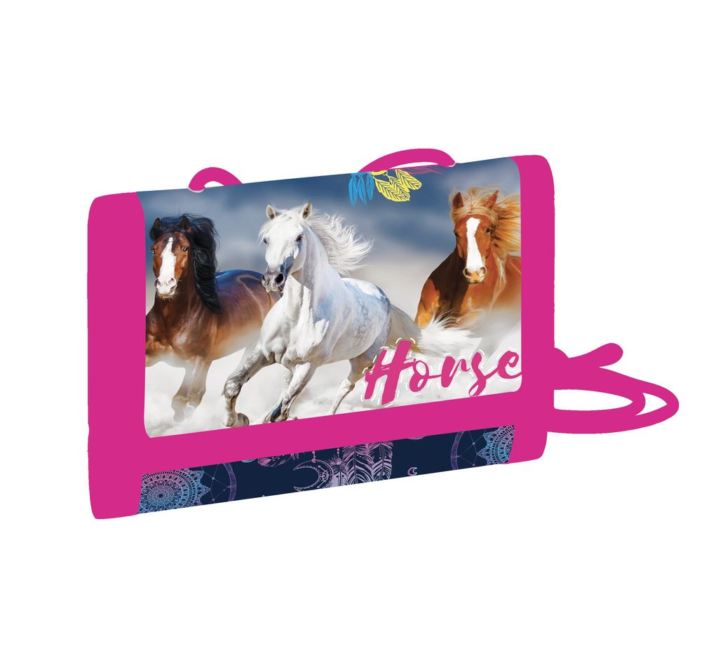 Praktická textilní peněženka na suchý zip. Vzadu je uzavíratelná kapsička na drobné, uvnitř jedna přihrádka na bankovky, šest kapsiček na karty a jedna průhledná kapsa.
