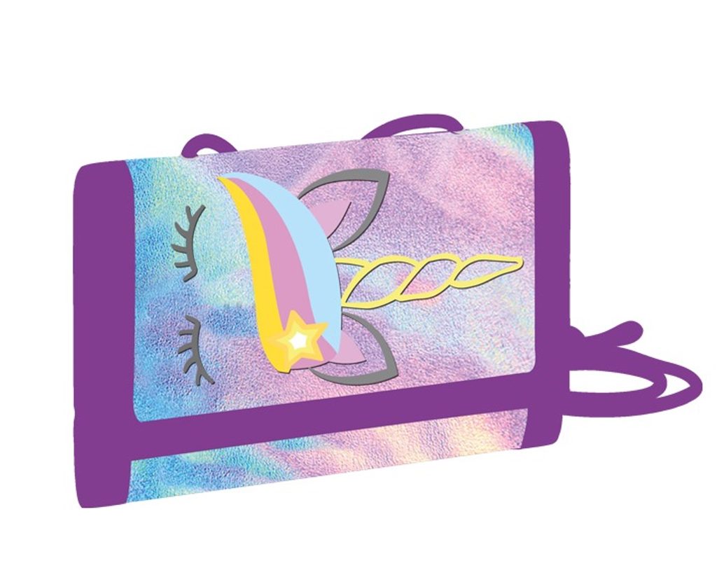 Praktická textilní peněženka na suchý zip. Vzadu je uzavíratelná kapsička na drobné, uvnitř jedna přihrádka na bankovky, šest kapsiček na karty a jedna průhledná kapsa.
