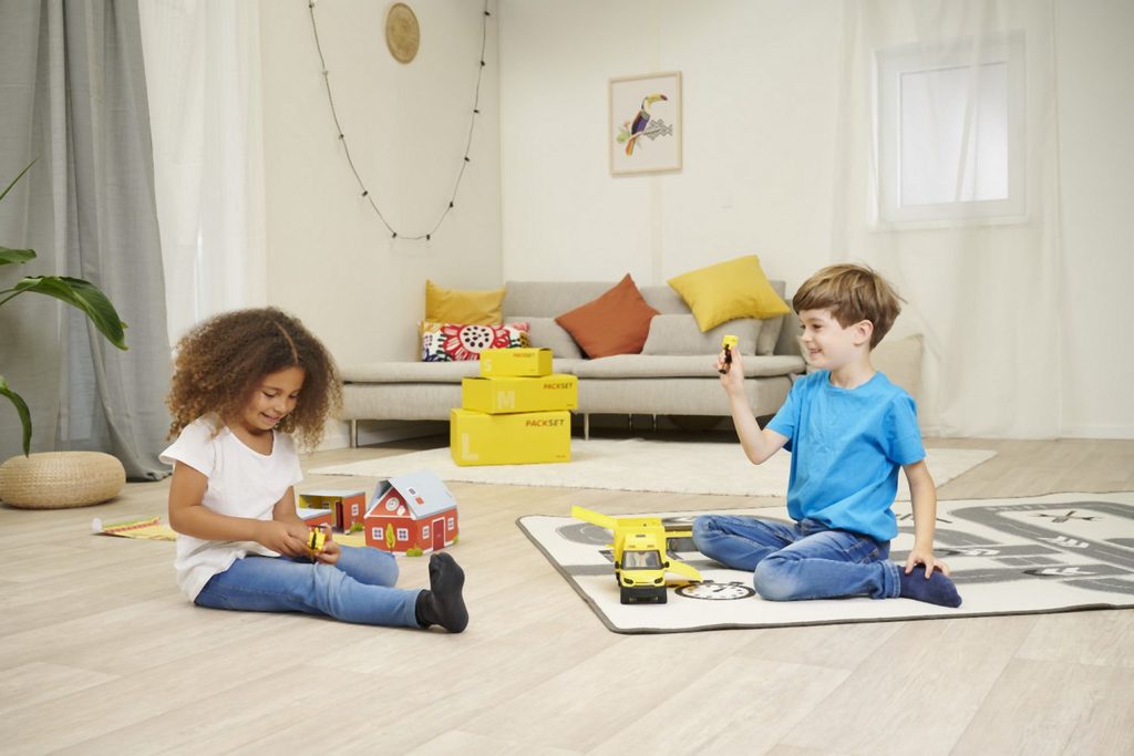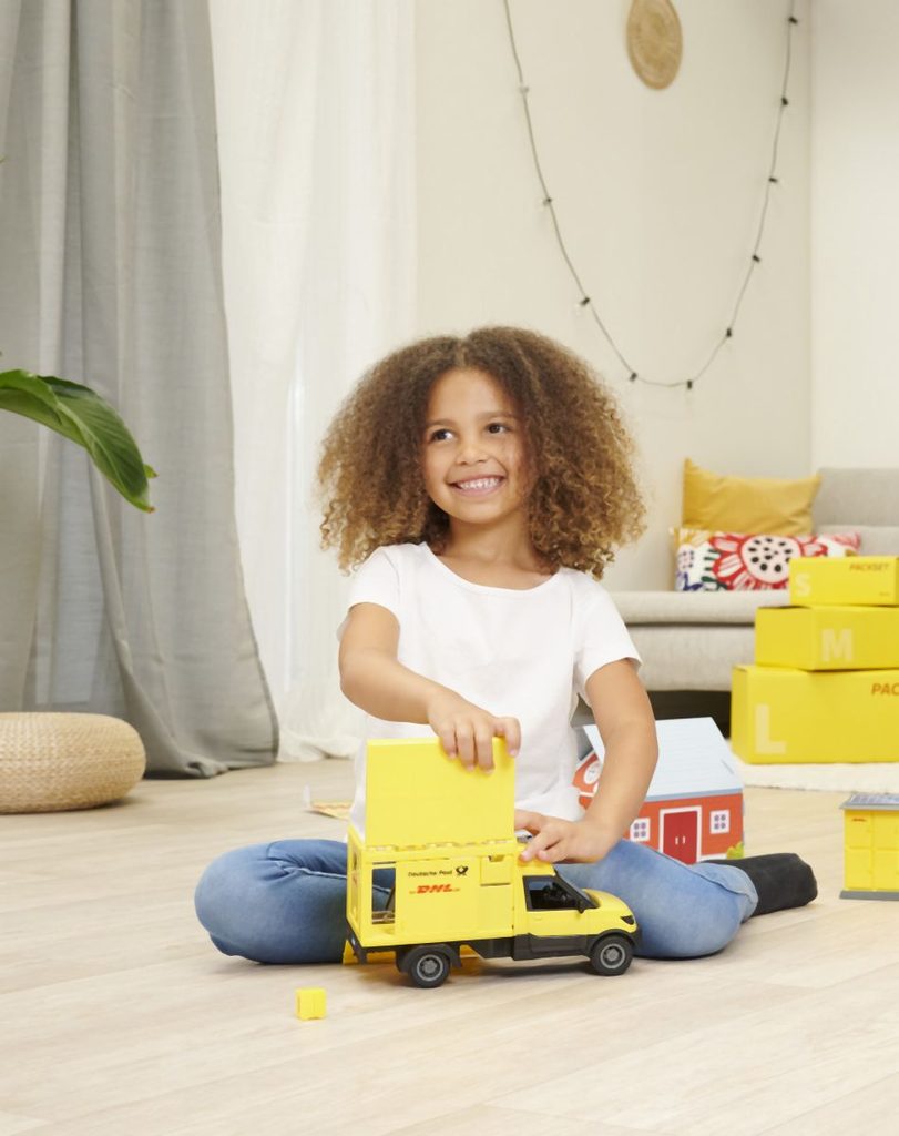 DHL Delivery sada - dodávka na volnoběh, poštovní kolo, výdejní box DHL, figurka kurýra a další doplňky. Otevíratelné části, se světelnými a zvukovými efekty. Délka 25 cm, barva žlutá.