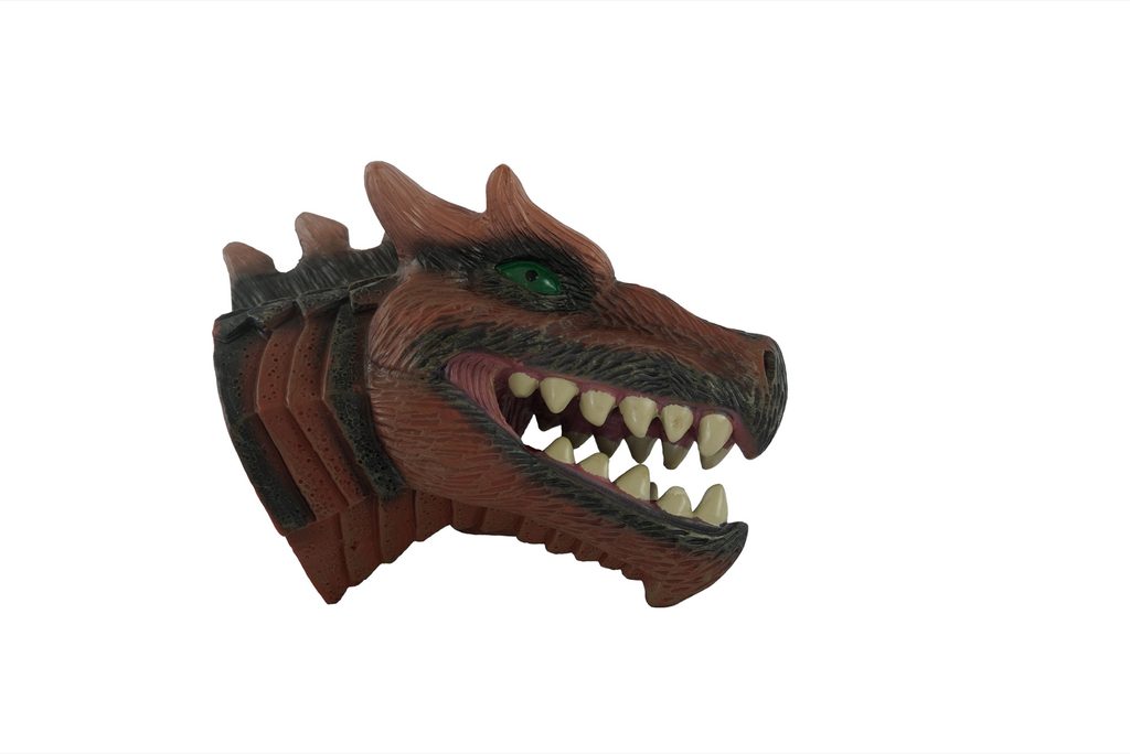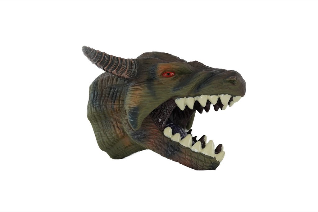 Gumové návleky na ruku ve tvaru dinosauří hlavy. Měká guma umožňuje pohyb čelisti donosaura. 4 druhy