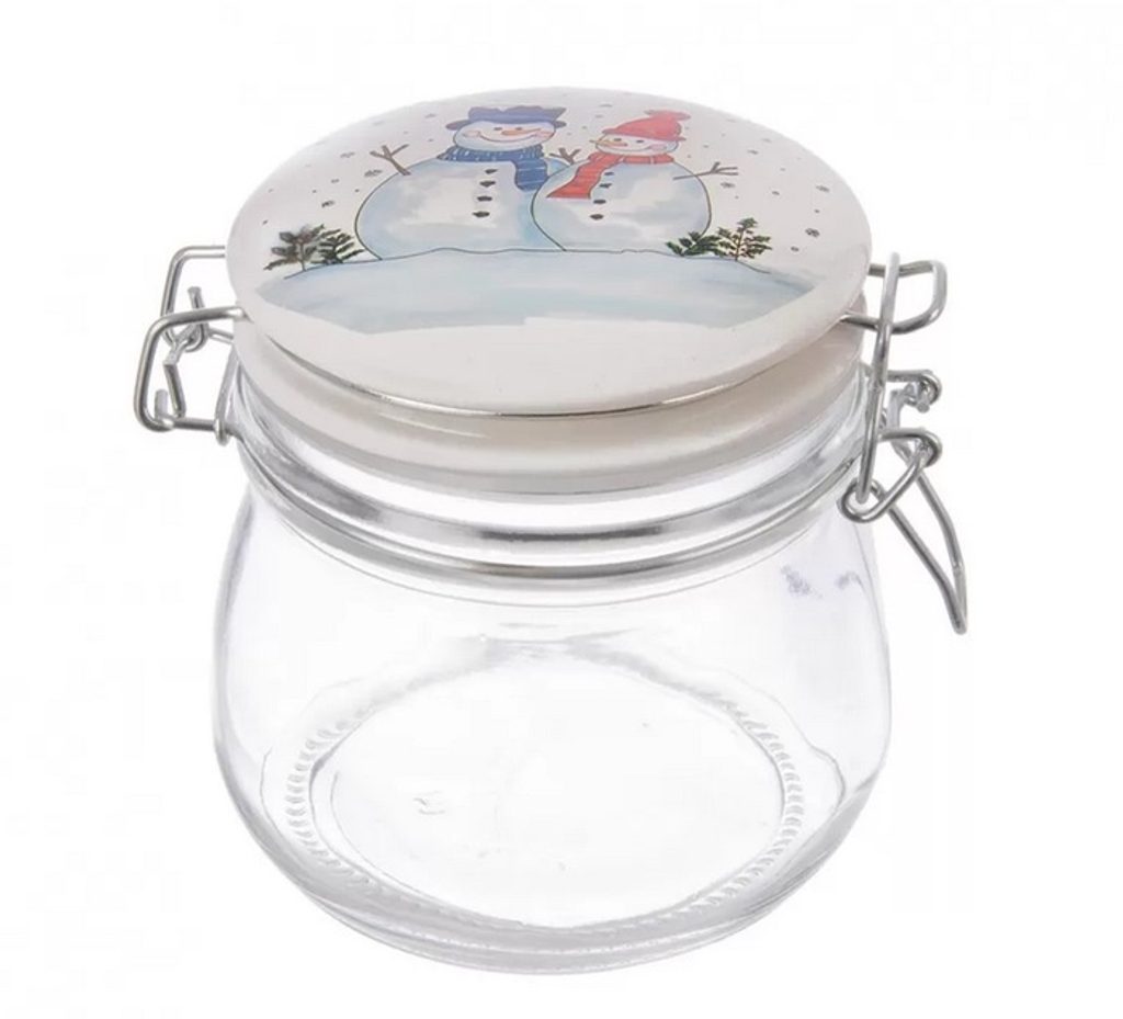 - dóza 0,50l SNĚHULÁK-ker.víčko, d11,v.11,5cm, patentní, sklo