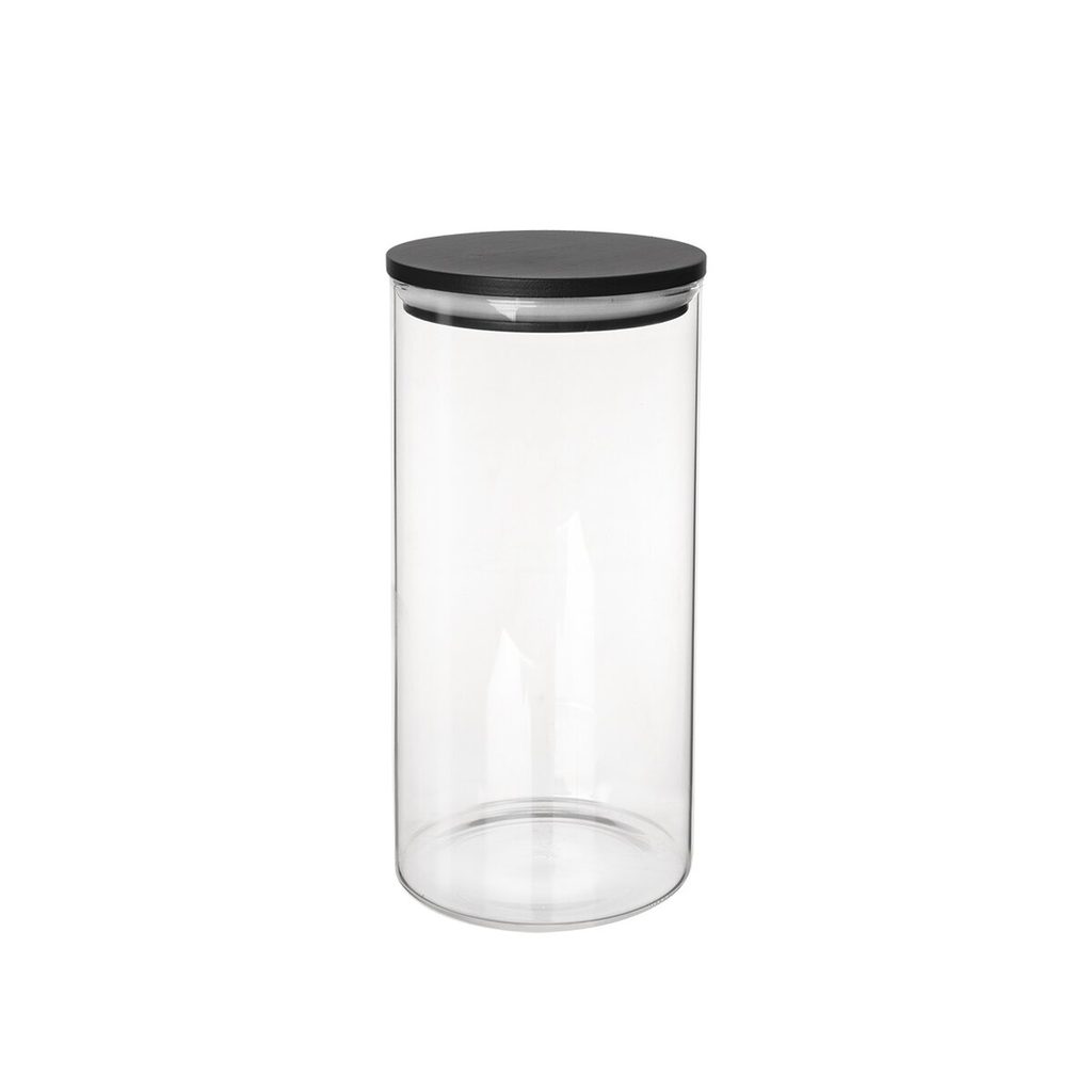 Dóza s víčkem se silikonovým těsněním na uskladnění potravin. Pevné uzavření zaručí, že uložené potraviny nevlhnou a zachovávají si své aroma i chuť a do nádoby se nedostanou potravinoví škůdci. Vhodné pro luštěniny, rýži, těstoviny i sypké potraviny. Materiál: borosilikátové sklo, bambus s povrchovou úpravou v černé barvě, silikonové těsnění. Rozměry: objem 1,05 l, pr. 9 cm, v. 18 cm. Skleněná část je vhodná do myčky.