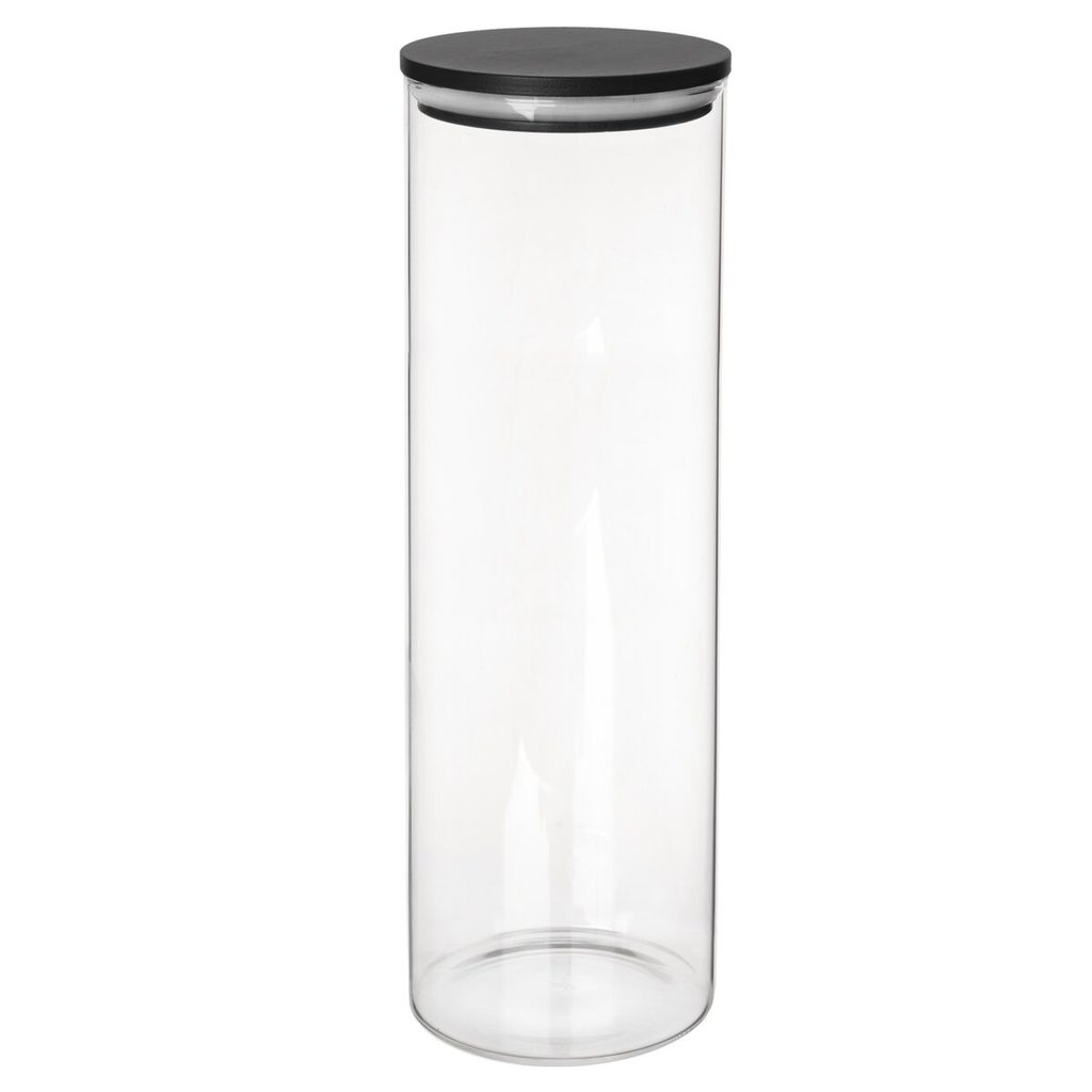 Dóza s víčkem se silikonovým těsněním na uskladnění potravin. Pevné uzavření zaručí, že uložené potraviny nevlhnou a zachovávají si své aroma i chuť a do nádoby se nedostanou potravinoví škůdci. Vhodné pro špagety a různé těstoviny i sypké potraviny. Materiál: borosilikátové sklo, bambus s povrchovou úpravou v černé barvě, silikonové těsnění. Rozměry: objem 1,6 l, pr. 9 cm, v. 27,5 cm. Skleněná část je vhodná do myčky.